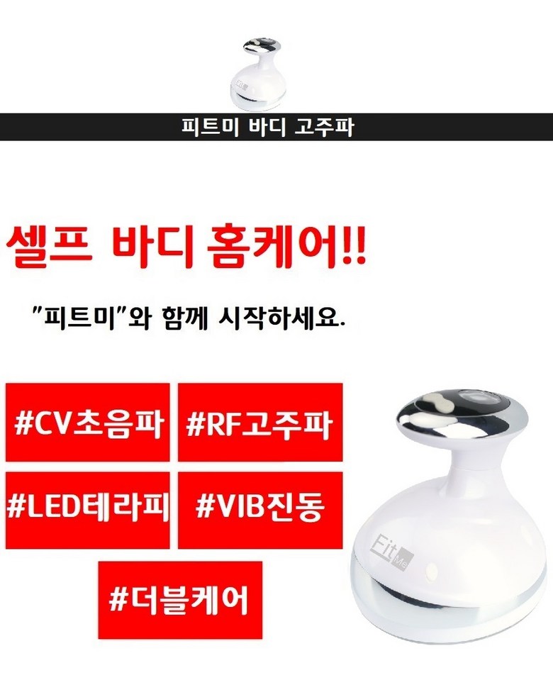 | 품명 및 모델명 | 피트미 바디 고주파마사지기 | 인증/허가 사항 | 안전확인신고번호 : YU101691-220111방송통신기자재등의 적합등록 : R-r-09s-smc-bm1 |