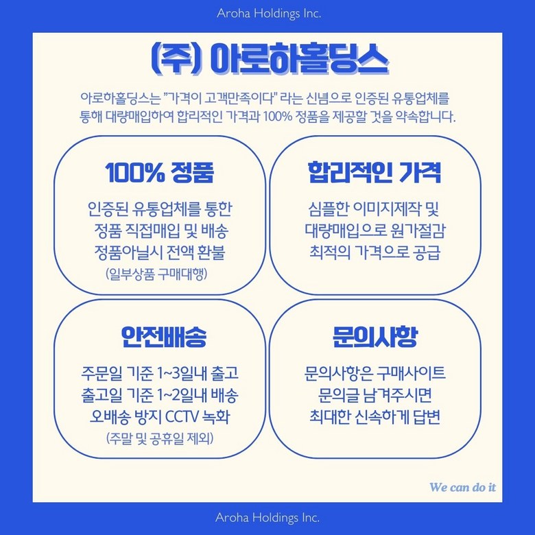 - ㆍ모니터 해상도의 차이로 인해 색상이나 이미지가 실제와 달라, 고객이 단순 변심으로 교환/반품을 무료로 요청하는 경우