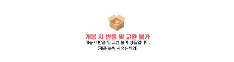 | 교환/반품 신청 기준일 | ㆍ단순변심에 의한 교환/반품은 제품 수령 후 7일 이내까지, 교환/반품 제한사항에 해당하지 않는 경우에만 가능 (배송비용과 교환/반품 비용 왕복배송비 고객부담) ㆍ상품의 내용이 표시·광고의 내용과 다른 경우에는 상품을 수령한 날부터 3개월 이내, 그 사실을 안 날 또는 알 수 있었던 날부터 |