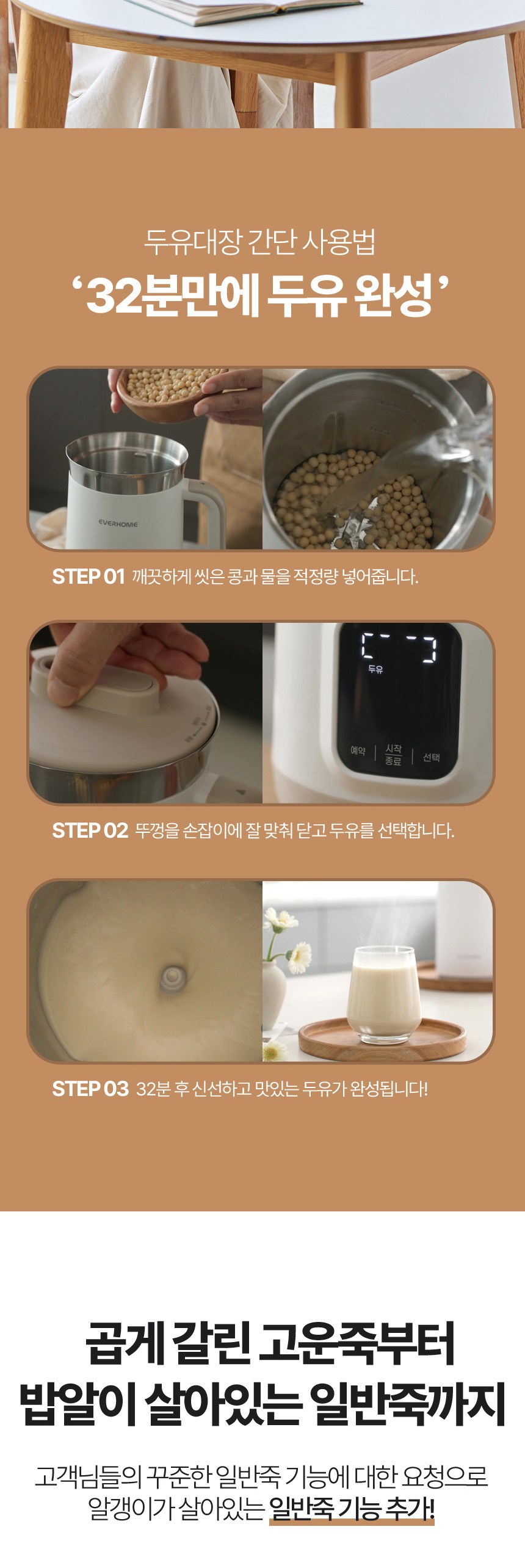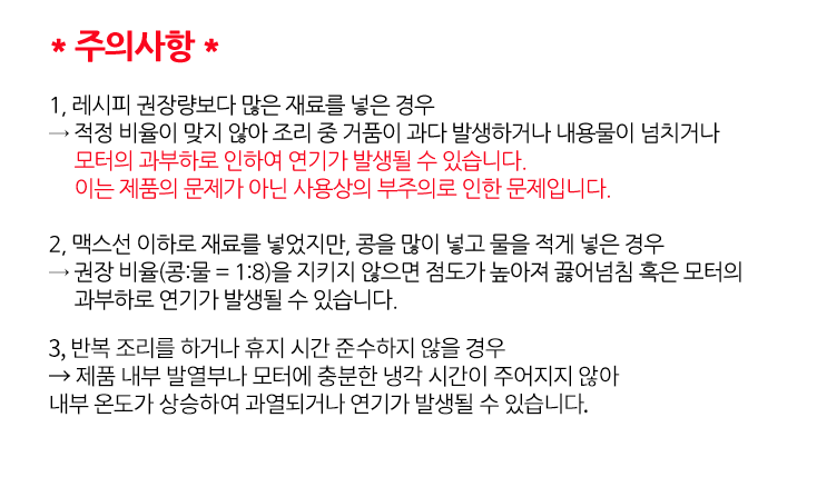 - 구성품: 전원코드 + 계량컵 + 세척솔 + 레시피북