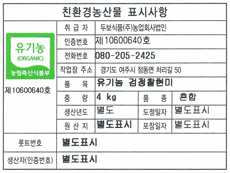 - 유기농/친환경 등: 인증 있음