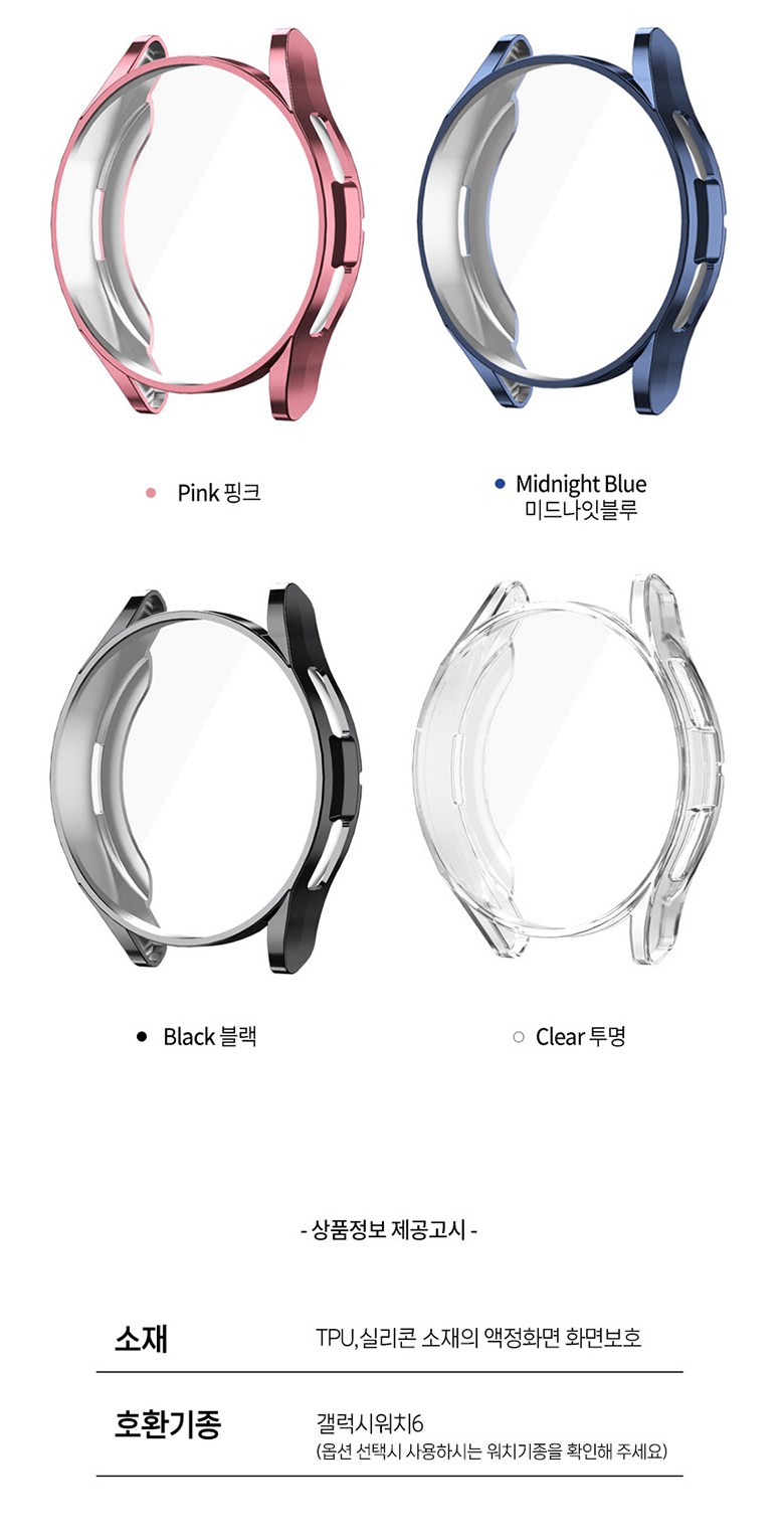| 품명 및 모델명 | 아이엠판다 갤럭시워치6 풀커버 실리콘케이스 | 인증/허가 사항 | 해당없음 |