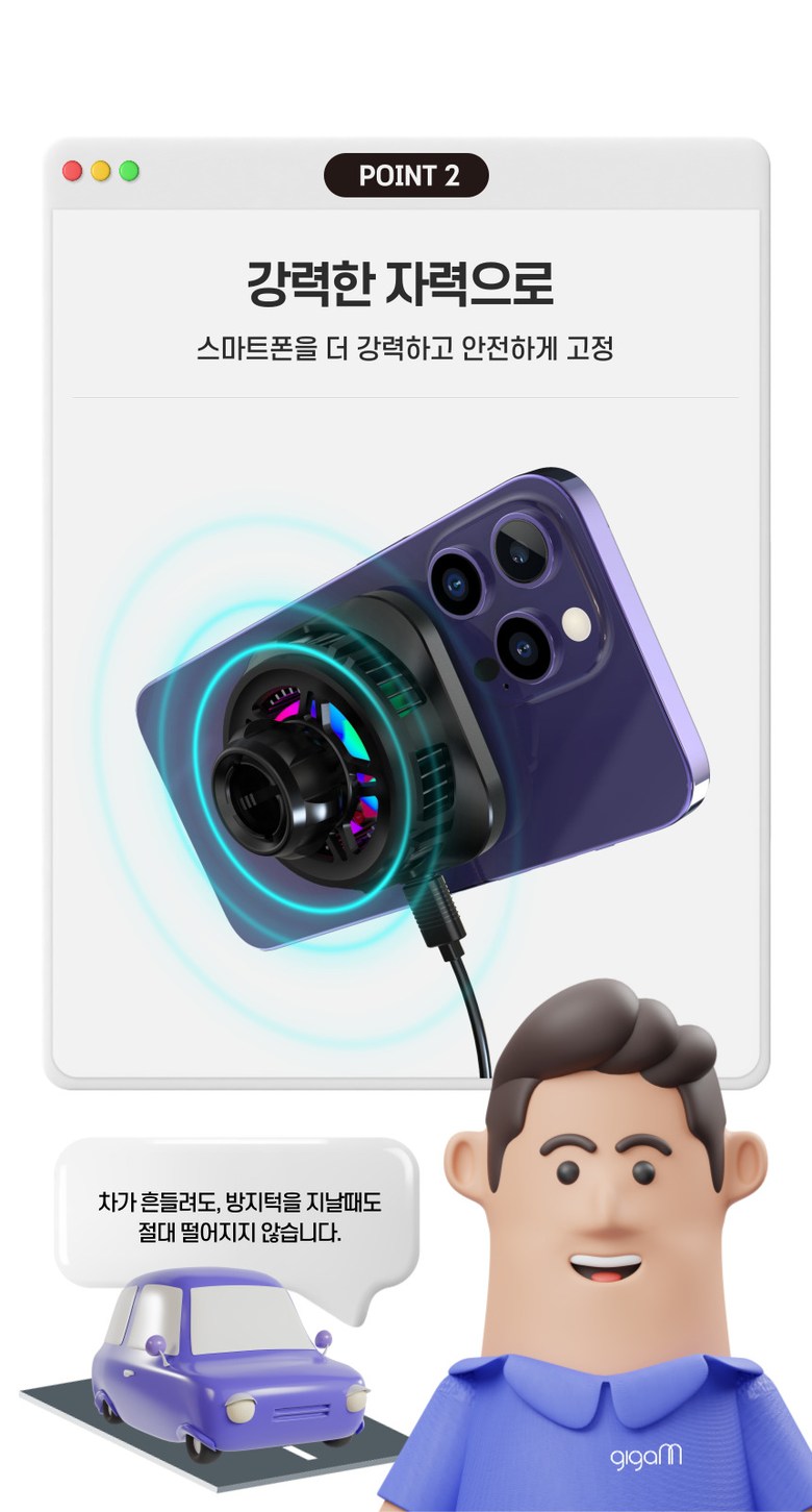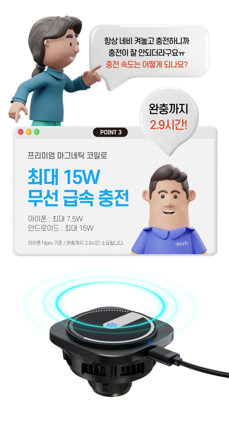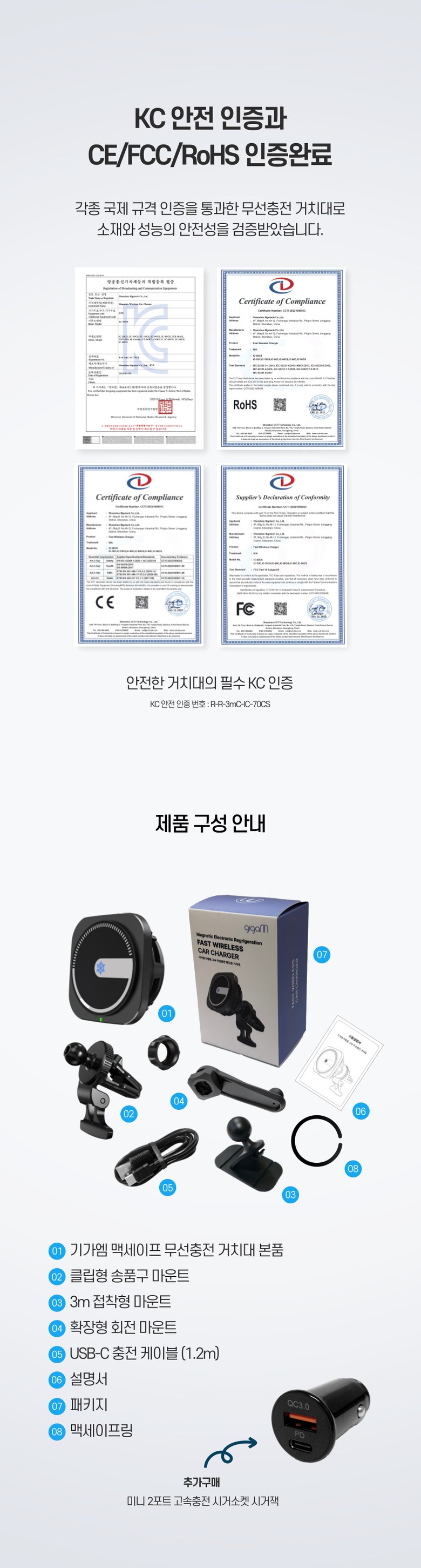 | 품명 및 모델명 | 기가엠 차량용 맥세이프 충전거치대 (GIGAM-90CS) | 동일모델 출시년월 | 2023년 4월 |