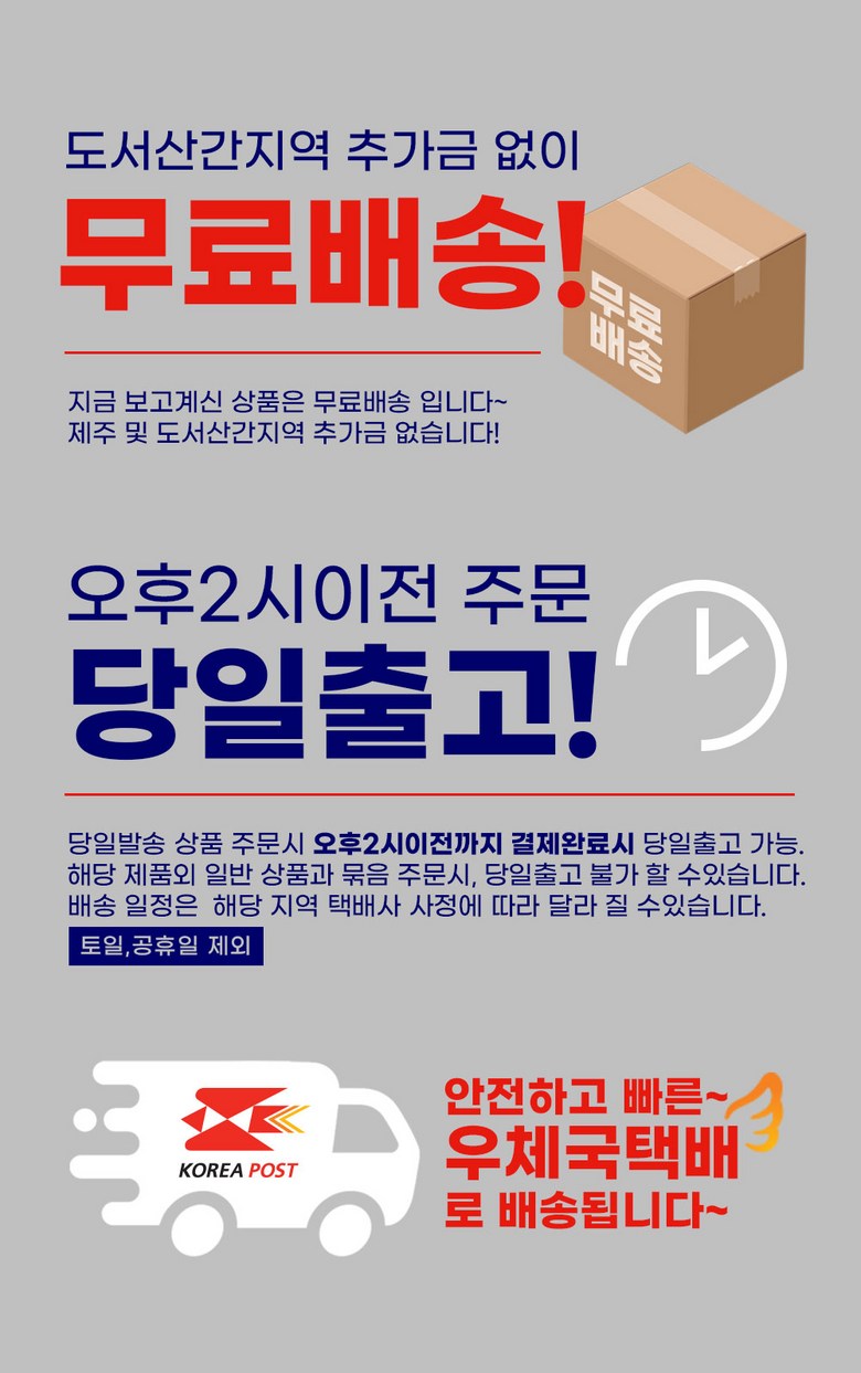 | 배송방법 | 순차배송 | 배송비 | 무료배송 - 도서산간 지역 추가비용 없음 |