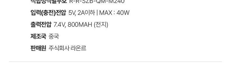 | 품명 및 모델명 | 마사지건 / LAMA3BLB | KC 인증정보 | 본품: R-R-SZb-QM-M240 | 배터리: YU101879-23001 |