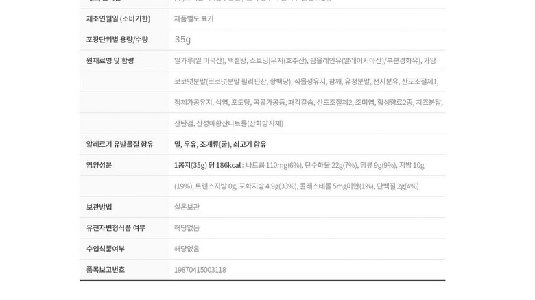 | 포장단위별 내용물의 용량(중량), 수량 | 상품 상세페이지 참조 | 원재료명 및 함량 | 상품 상세페이지 참조 |