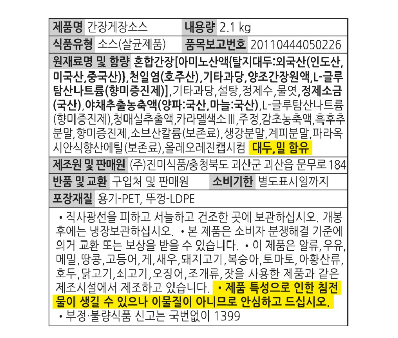 | 제조연월일, 소비기한 또는 품질유지기한 | 상품 상세페이지 참조 | 세부 품목군별 표시사항 | 상품 상세페이지 참조 |