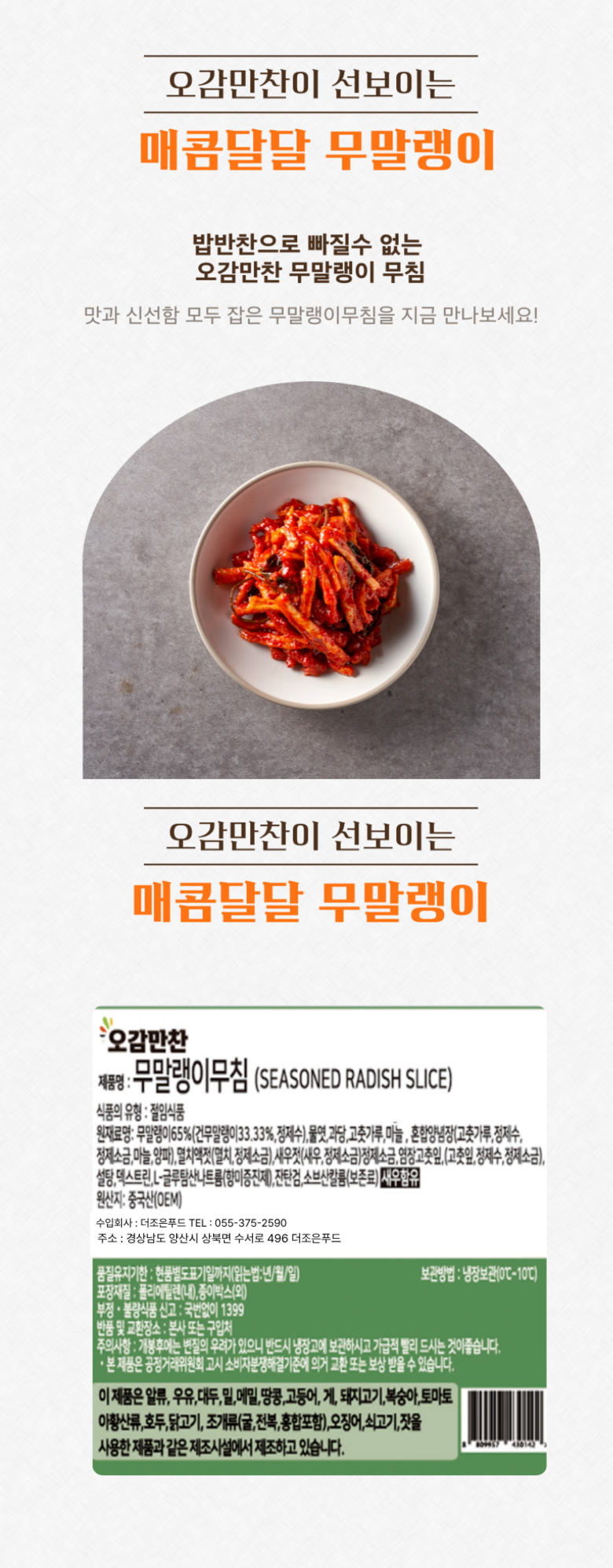 | 제품명 | 무말랭이무침 | 식품의 유형 | 가공식품 |