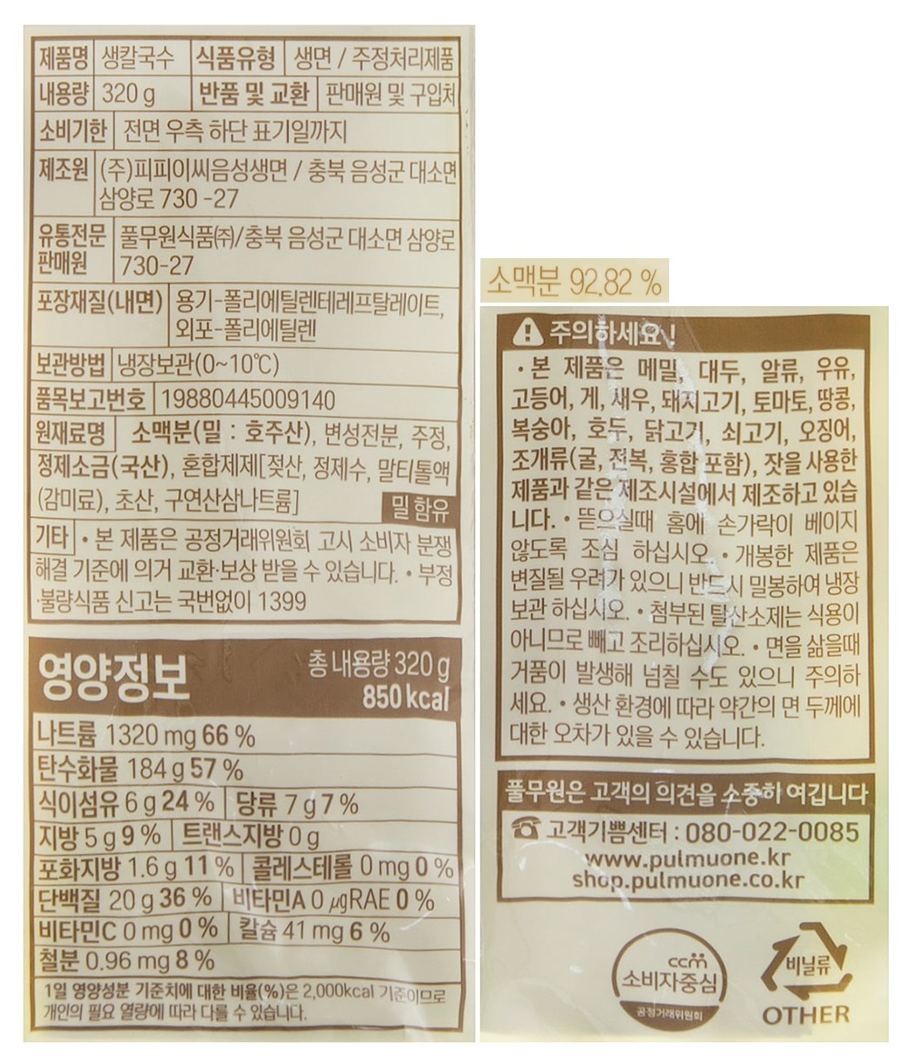 | 포장단위별 내용물의 용량(중량), 수량 | 320g x 1개입 x 2개 | 원재료명 및 함량 | 컨텐츠 참조 |