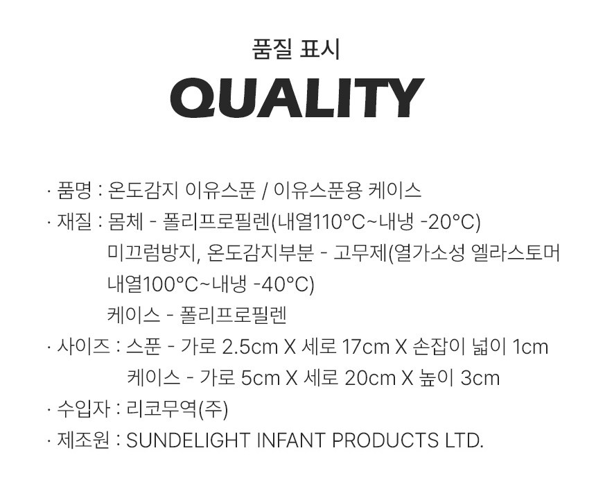 | 품명 및 모델명 | 피셔프라이스 온도감지 이유스푼 / 이유스푼용 케이스 | KC 인증정보 | 스푼 : 해당없음 , 케이스 : 유/KC마크 |