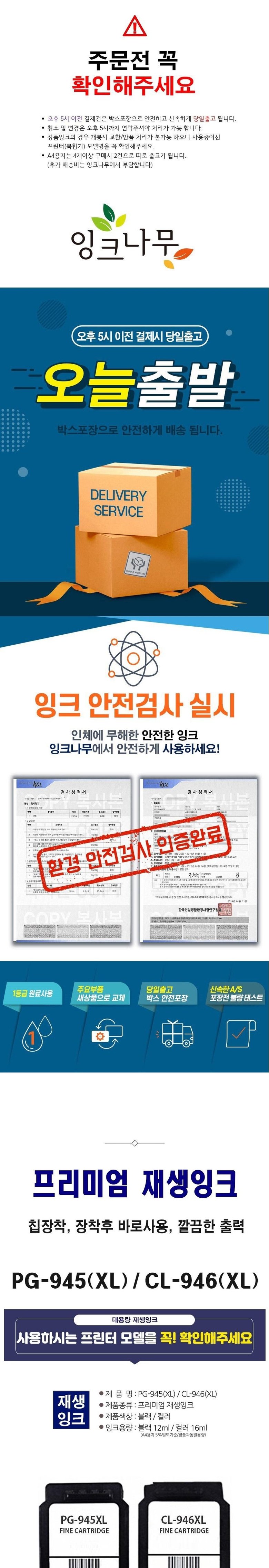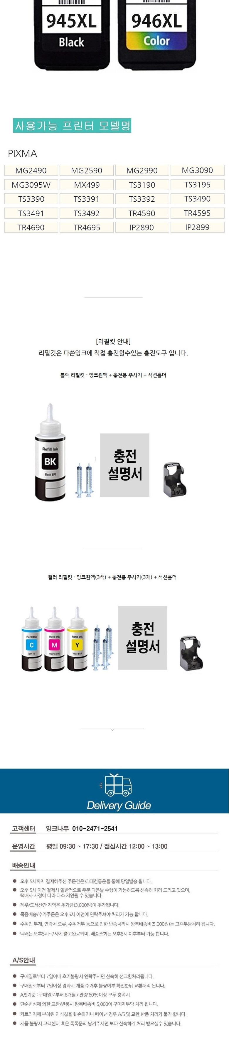 캐논 프린터 호환 잉크 PG-945XL CL-946XL MG2490 MG2590 TR4590 TR4595 MX499