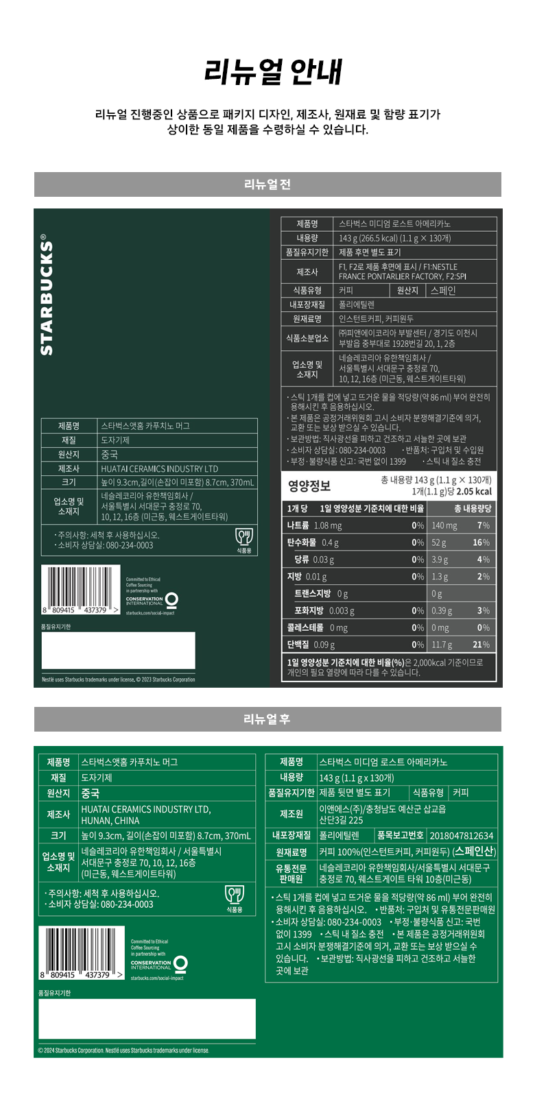 | 생산자 및 소재지 | 컨텐츠 참조 | 제조연월일, 소비기한 또는 품질유지기한 | 업데이트 예정 |