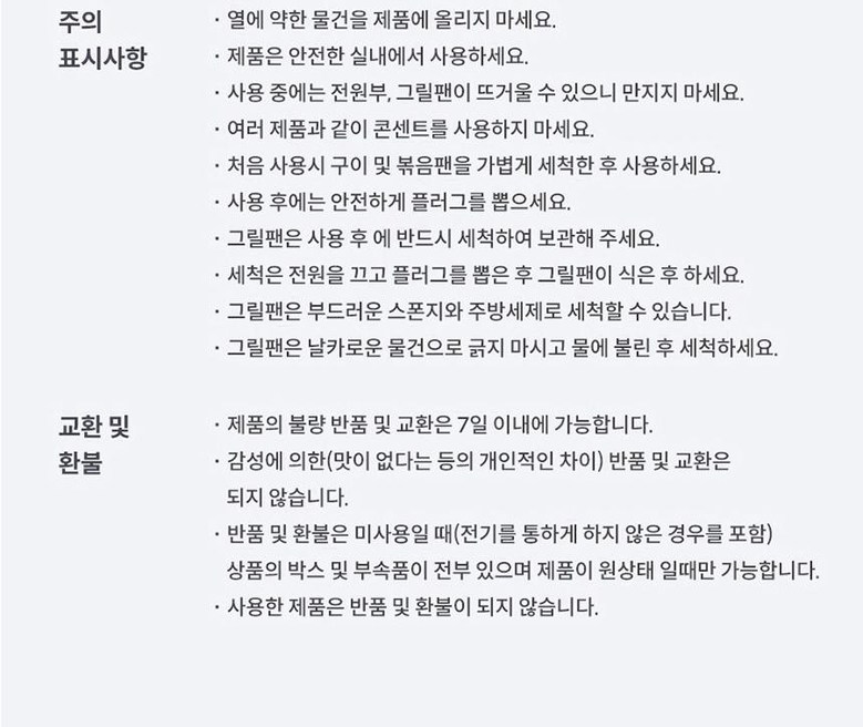 - ㆍ교환/반품에 관한 일반적인 사항은 판매자가 제시사항보다 관계법령이 우선합니다.