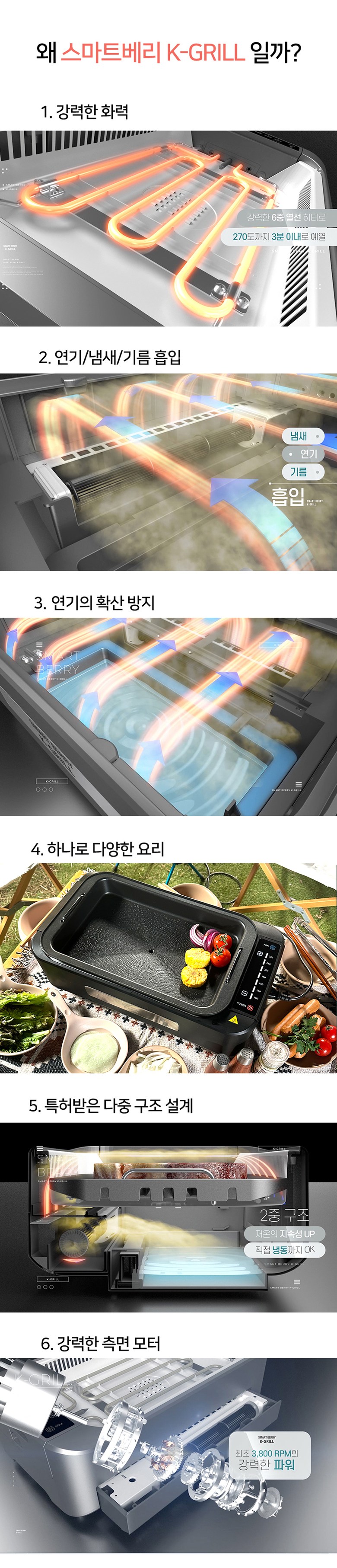 스마트베리 연기먹는 다용도 케이 K 그릴 시즌2 FULL 세트 SBG-K01 연기 안나는 가정용 대형 전기그릴