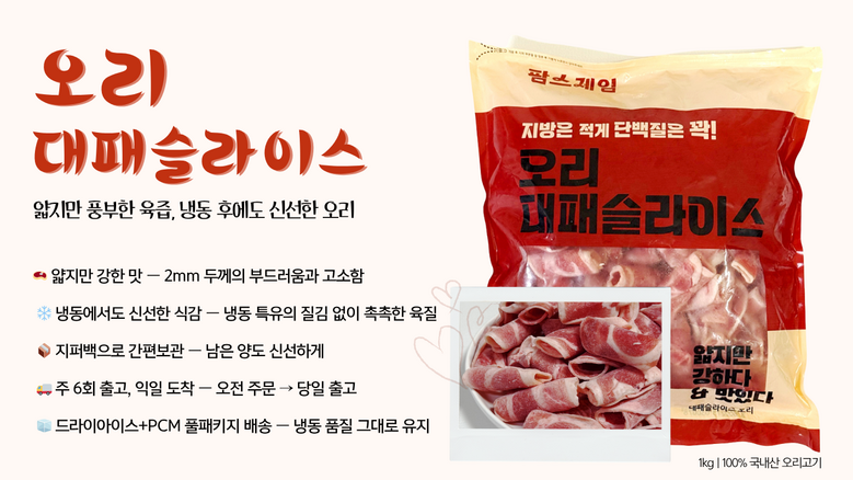 | 품목 또는 명칭 | 오리주물럭 | 포장단위별 내용물의 용량(중량),수량,크기 | 상품 상세페이지 참조 |