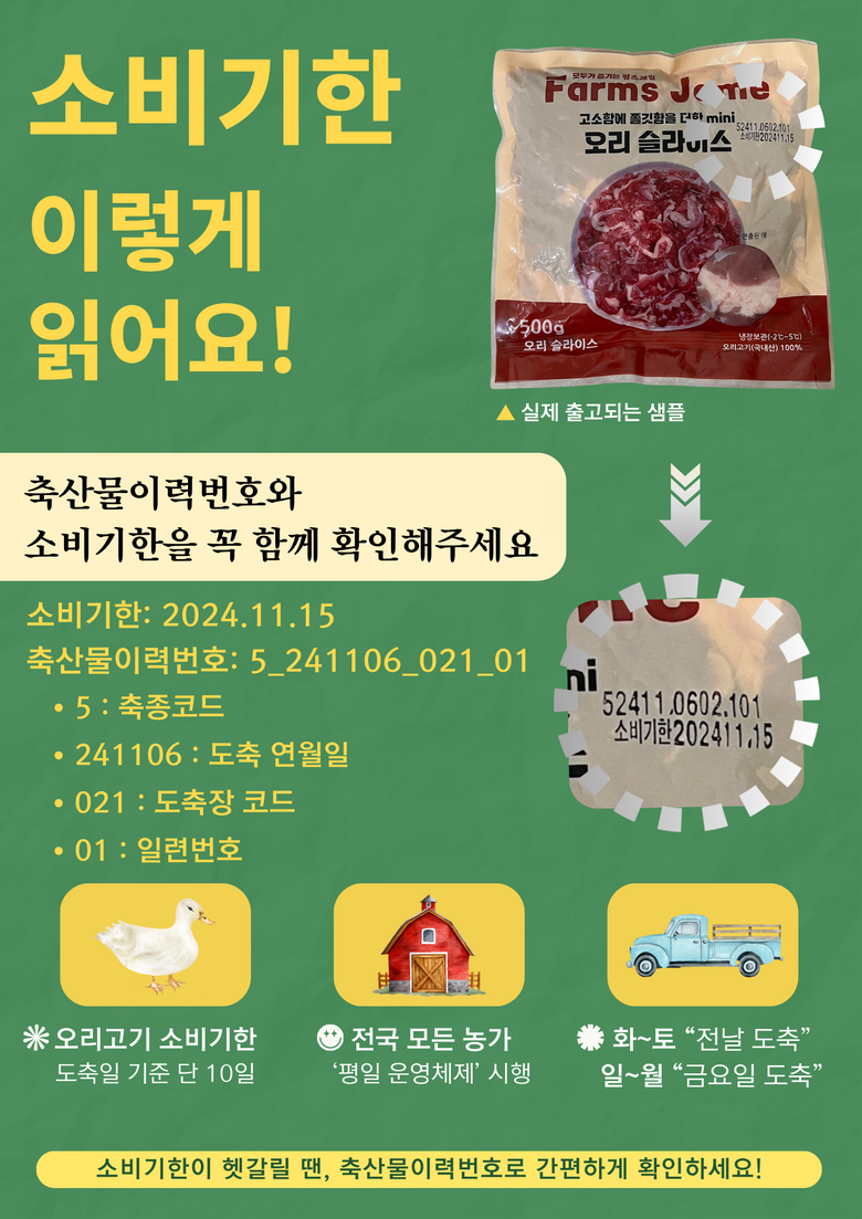 | 제조연월일, 소비기한 또는 품질유지기한 | 도축일로부터 10일이내(냉동보관시 30일이내) | 세부 품목군별 표시사항 | 상품 상세페이지 참조 |