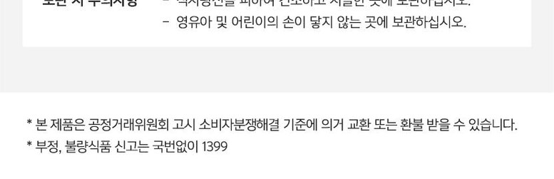 | 소비자상담 및 교환반품 문의 | 쿠팡고객센터 1577-7011 배송 및 환불/교환에 대한 문의는 마이쿠팡-고객센터 내 상담하기를 이용해주세요. | ||