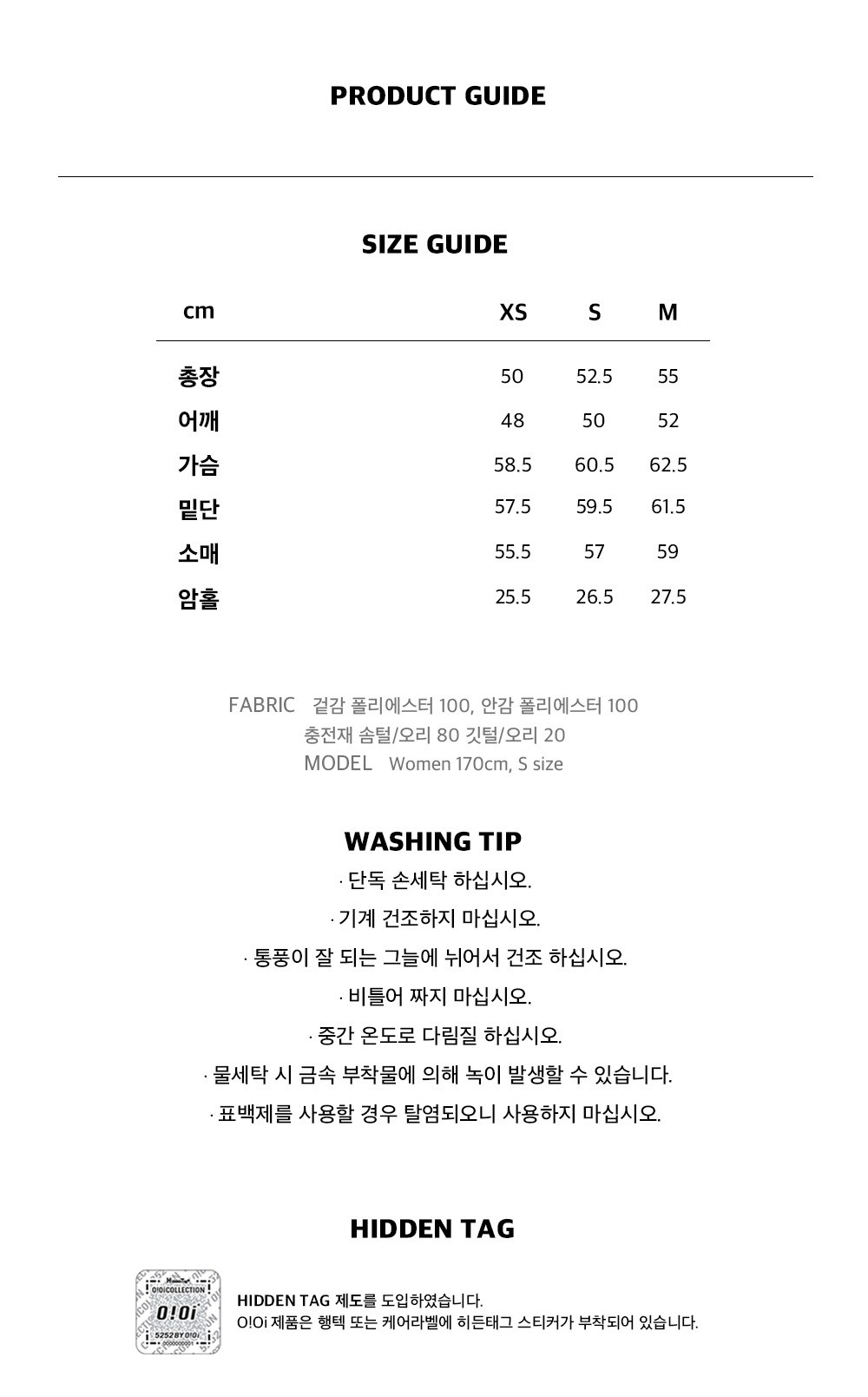 | 제조국 | 미얀마 | 세탁방법 및 취급시 주의사항 | 컨텐츠 참조 |