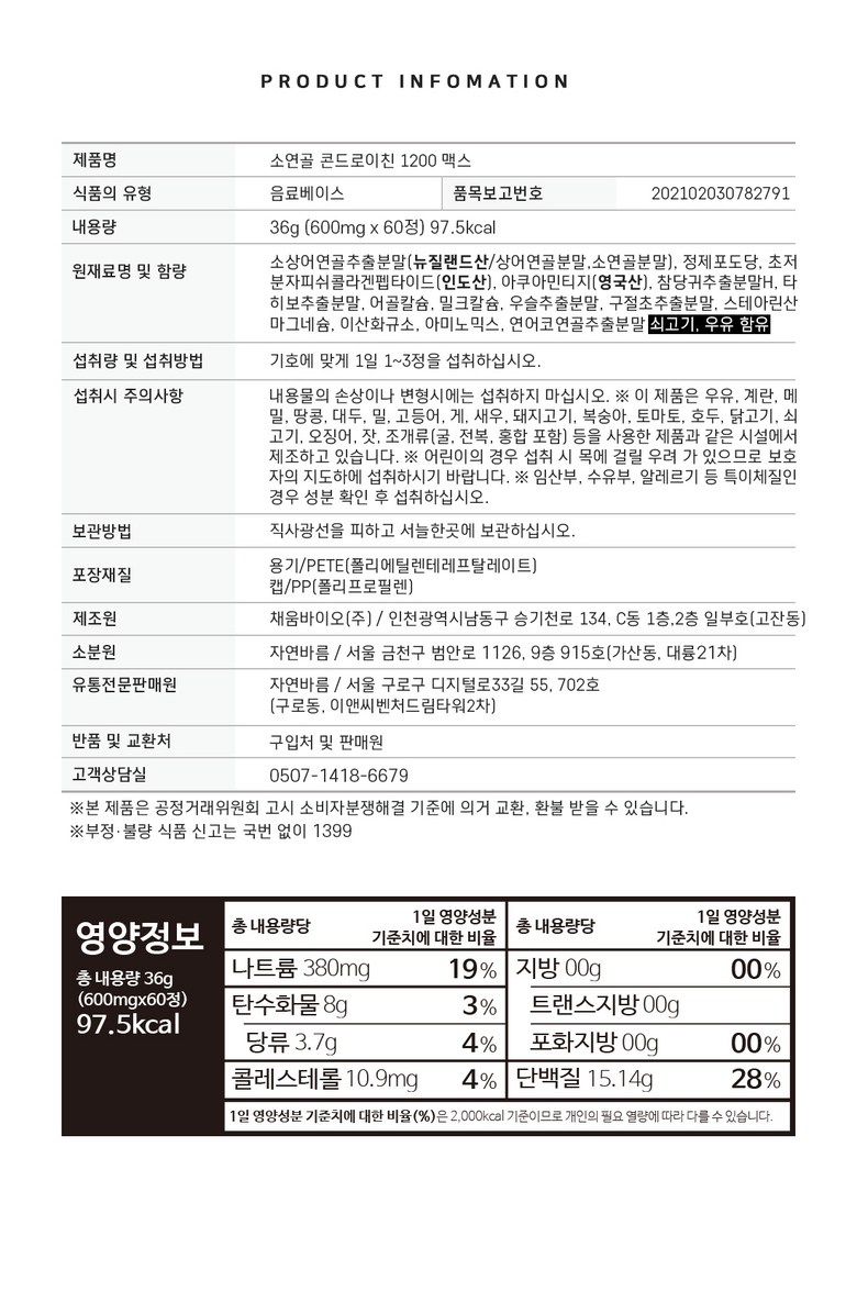 | 제품명 | 상품 상세페이지 참조 | 식품의 유형 | 상품 상세페이지 참조 |