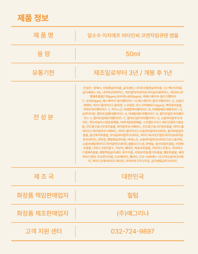| 용량(중량) | 50ml | 제품 주요 사양 | 상품 상세페이지 참조 |