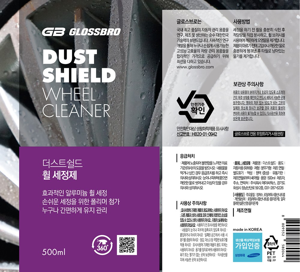 | 품목 및 제품명 | 세정제 / 더스트쉴드 | 용도(표백제의 경우 계열을 함께표시) 및 제형 | 자동차용-외부용 / 분사형-분무기형 |
