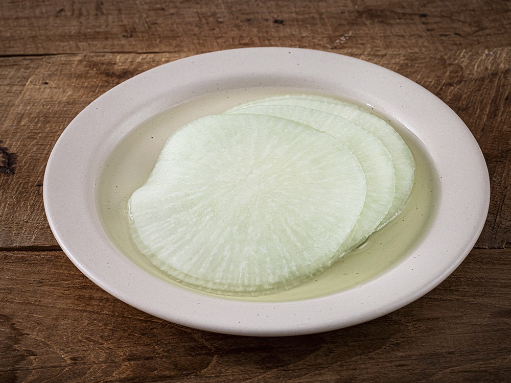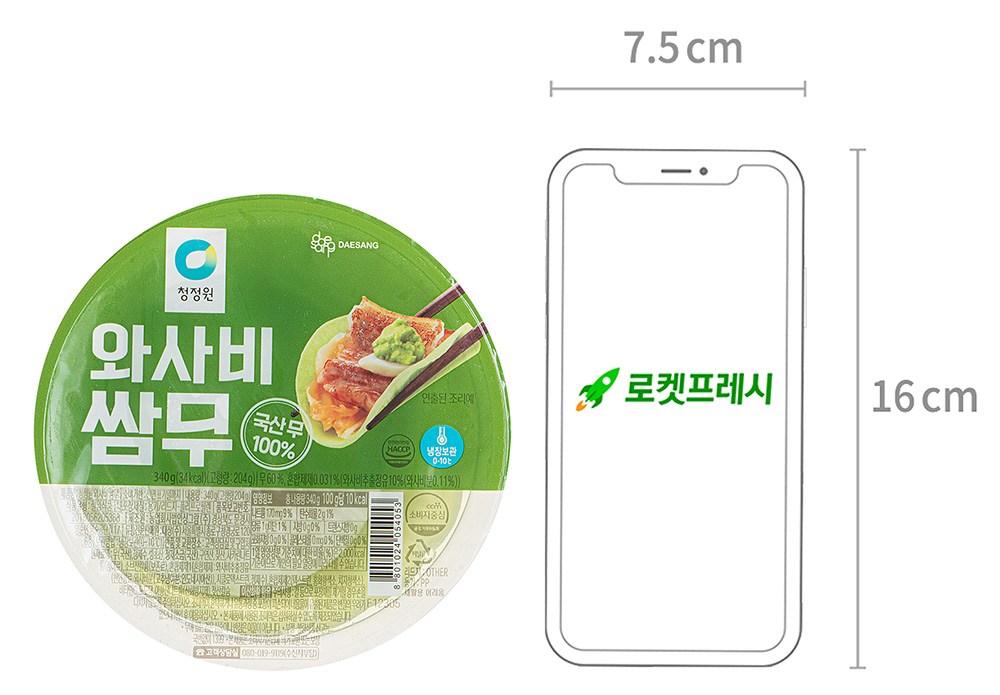 향긋한 감칠맛이 매력적인 와사비 쌈무예요. 촉촉하고 아삭아삭한 식감으로 입맛을 돋우는 반찬이지요. 육류 요리를 먹을 때 곁들이면 개운한 여운을 선사한답니다. 싱그러운 채소를 곁들여 쌈무말이로 만들어도 좋아요.