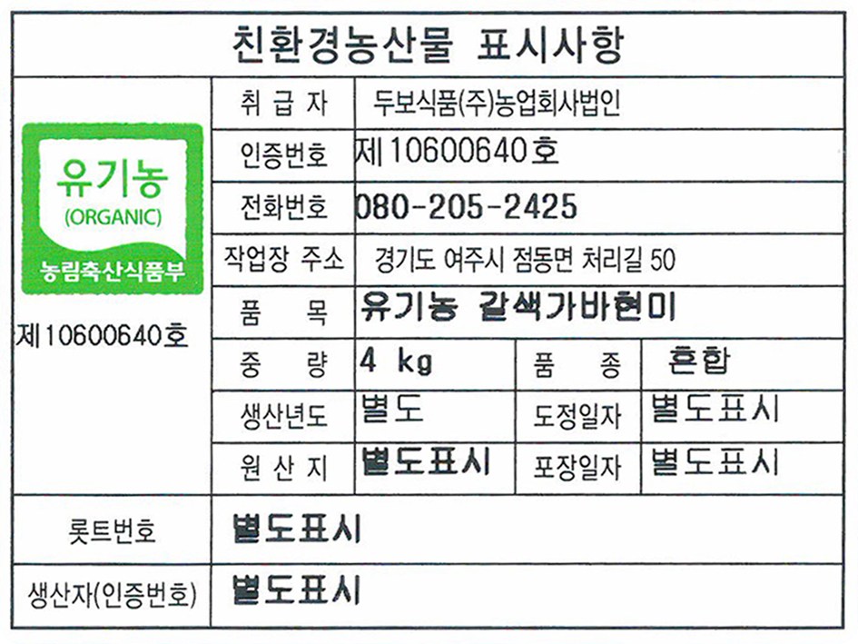 - 유기농/친환경 등: 인증 있음