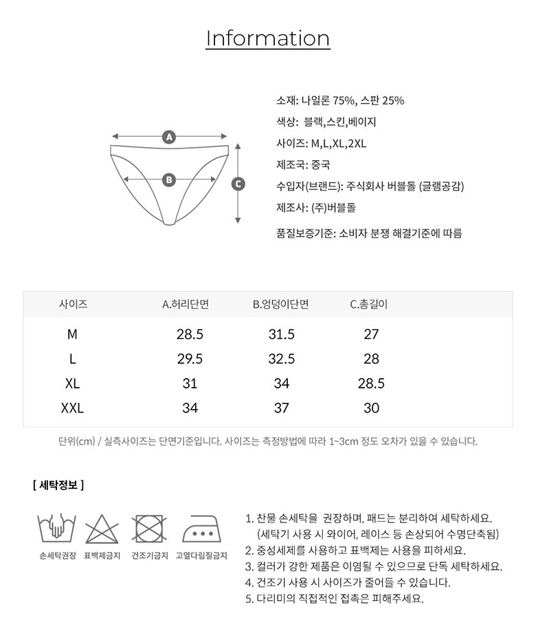 | 제조국 | 중국 | 세탁방법 및 취급시 주의사항 | 컨텐츠 참조 |