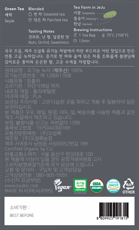 | 제품명 | 오설록 세작 | 식품의 유형 | 컨텐츠 참조 |