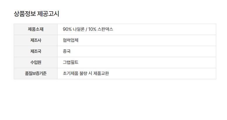 | 제조국 | 상품 상세페이지 참조 | 세탁방법 및 취급시 주의사항 | 상품 상세페이지 참조 |