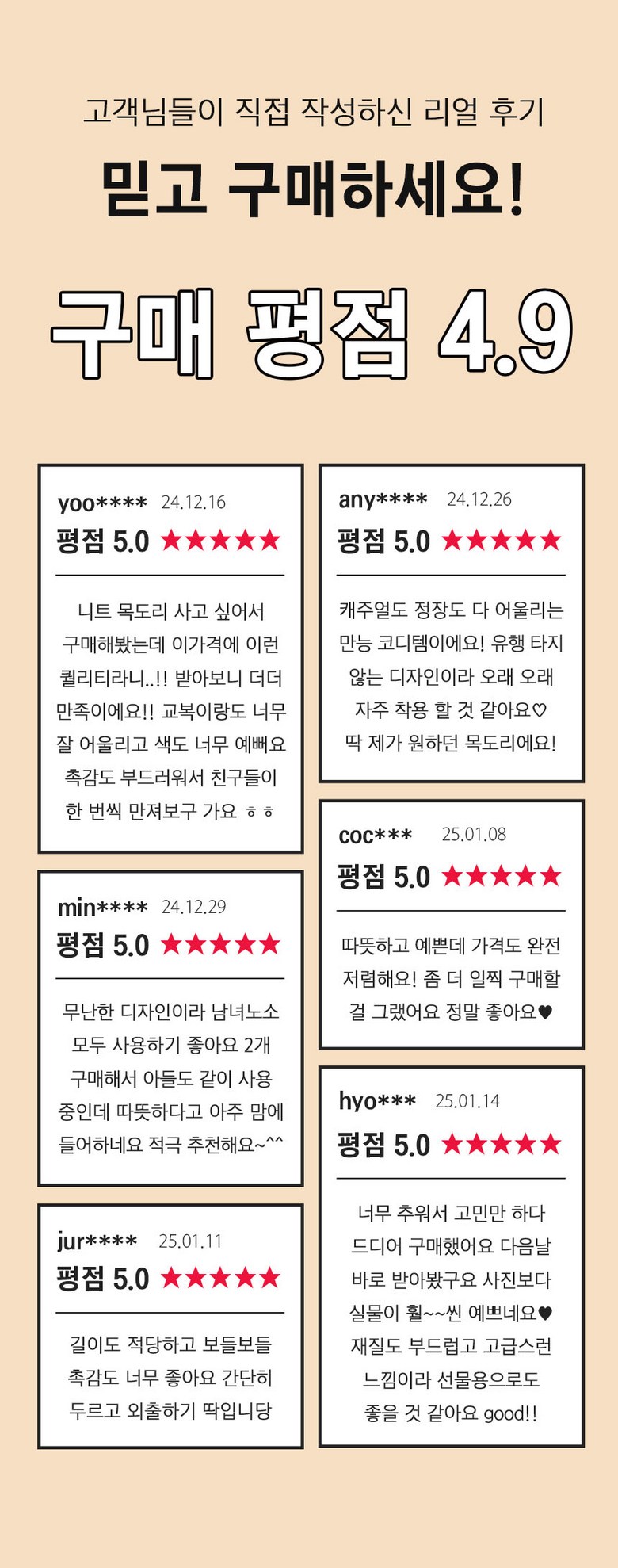 | 품명 및 모델명 | 스탠다드니트목도리 | 인증/허가 사항 | 해당없음 |