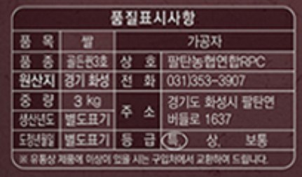 - 쌀 종류: 백미