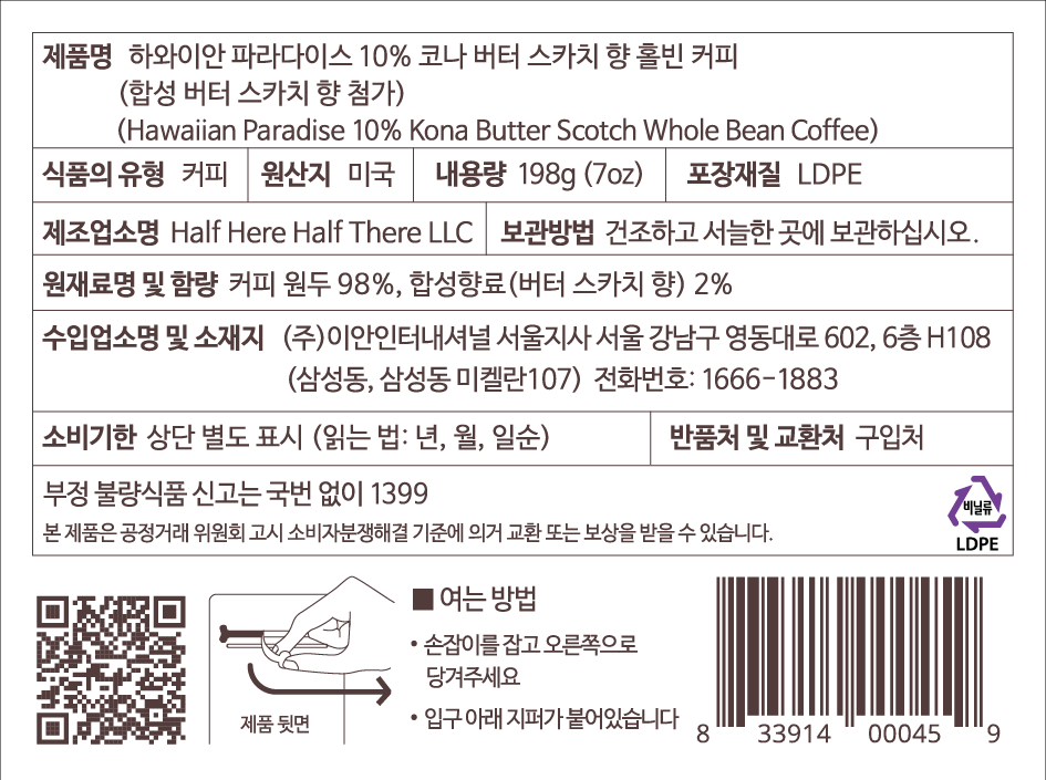 - 원두/생두 명칭: 하와이코나