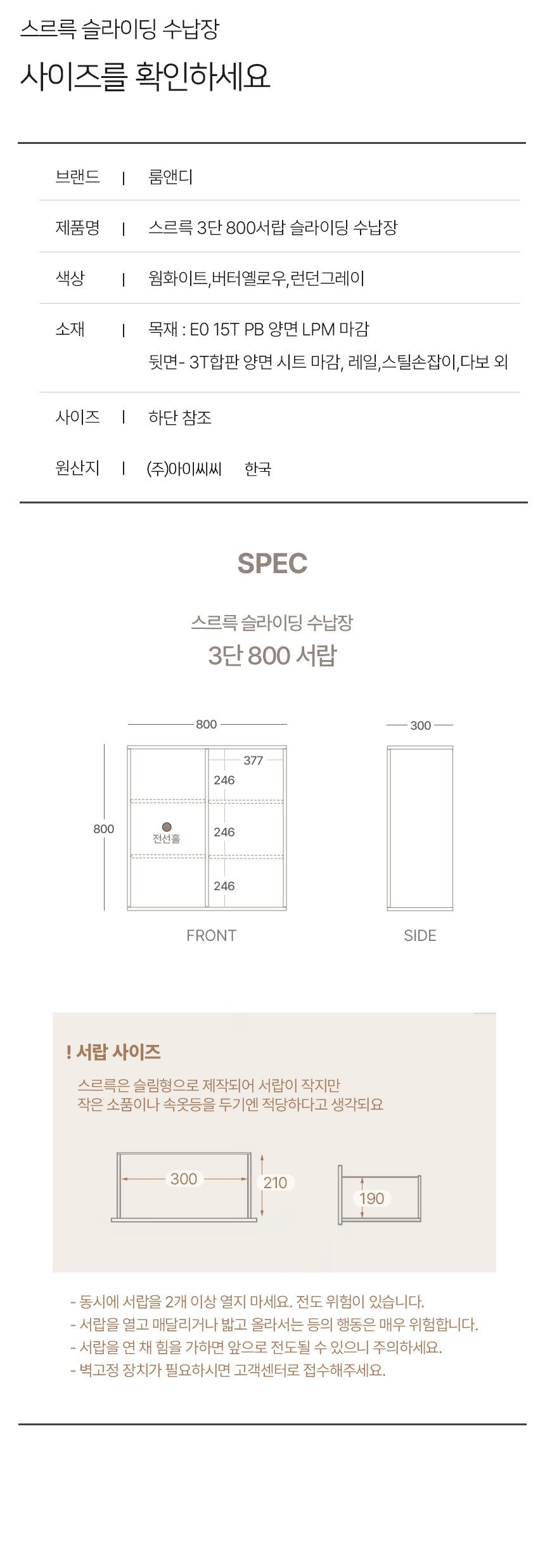 | 품명 | 스르륵 800서랍 슬라이딩 수납장 | KC 인증정보 | 해당없음 |