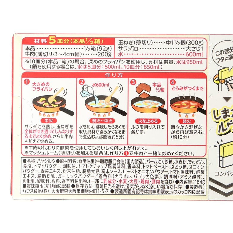 | 생산자 및 소재지 | HOUSE FOODS CORPORATION,JAPAN | 제조연월일, 소비기한 또는 품질유지기한 | 상품상세 참조 |