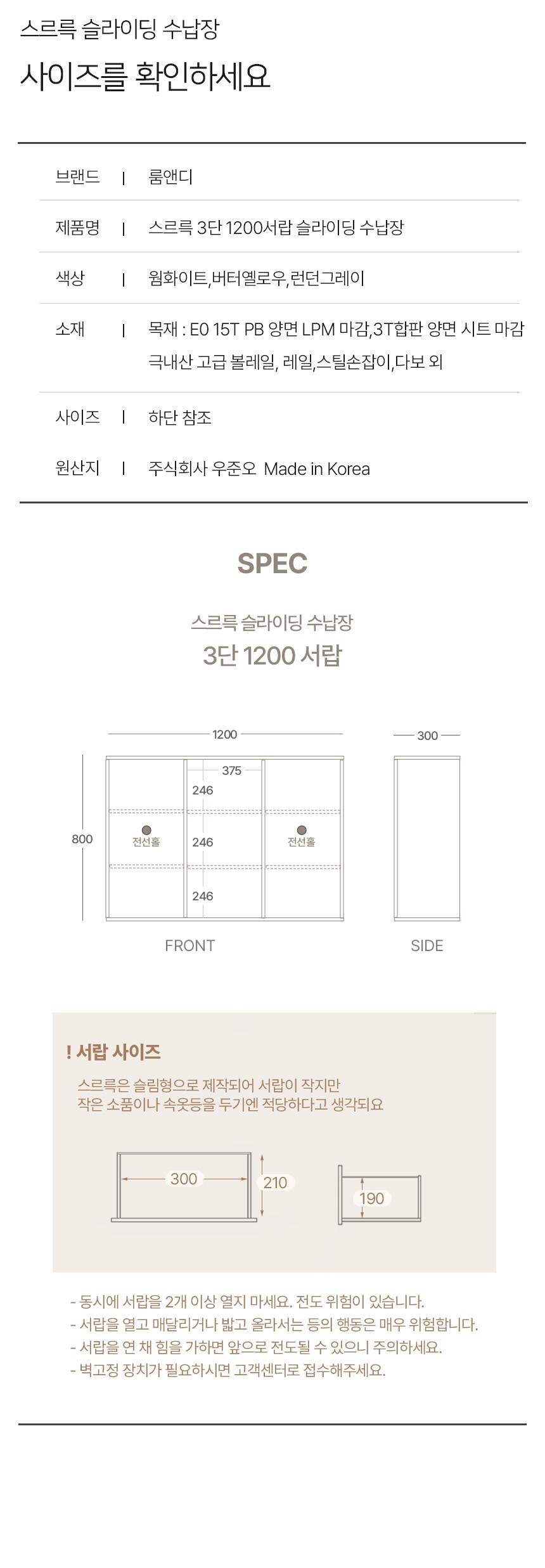 - 수납 도어 형태: 슬라이딩형(미닫이)
