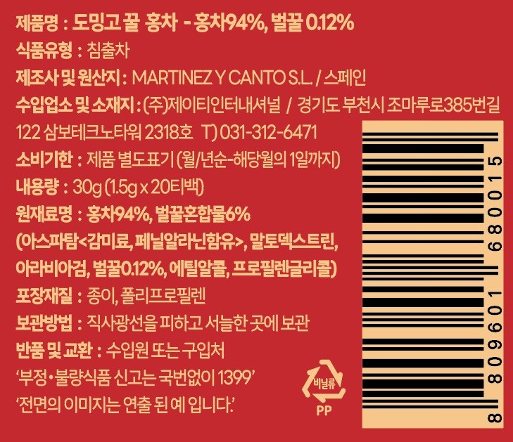 | 포장단위별 내용물의 용량(중량), 수량 | 1.5g x 20개입x4개 | 원재료명 및 함량 | 컨텐츠 참조 |