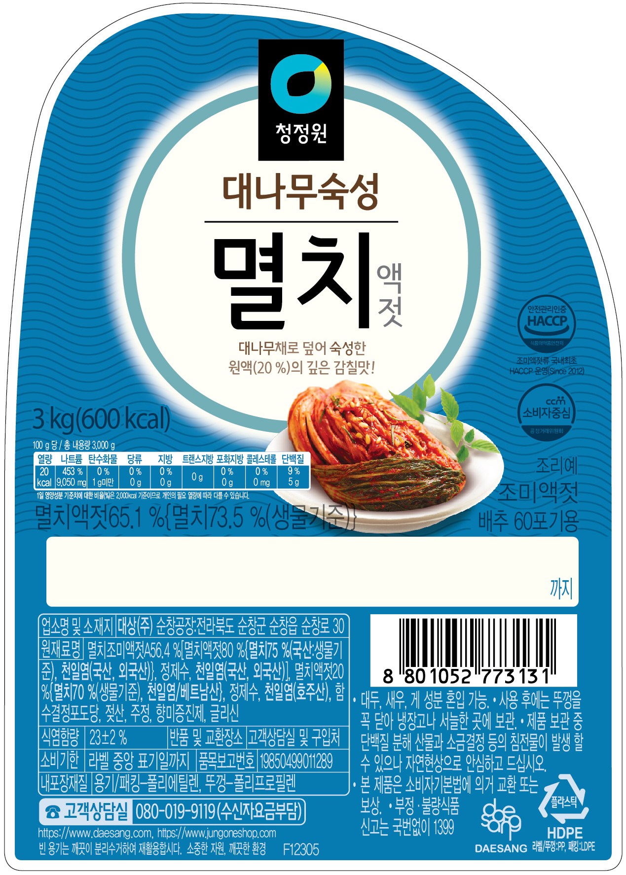 | 제품명 | 청정원 멸치액젓 | 식품의 유형 | 컨텐츠 참조 |