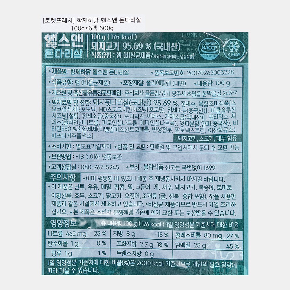 담백한 닭가슴살도 맛있지만, 가끔은 고소한 돼지고기가 먹고 싶을 때가 있죠. 그럴 땐, 헬스앤 돈다리살을 즐겨보세요. 돼지 뒷다리살을 사용해 만들어 쫄깃쫄깃한 식감이 일품이랍니다. 전자레인지로 조리하기만 하면 금세 완성될 거예요.