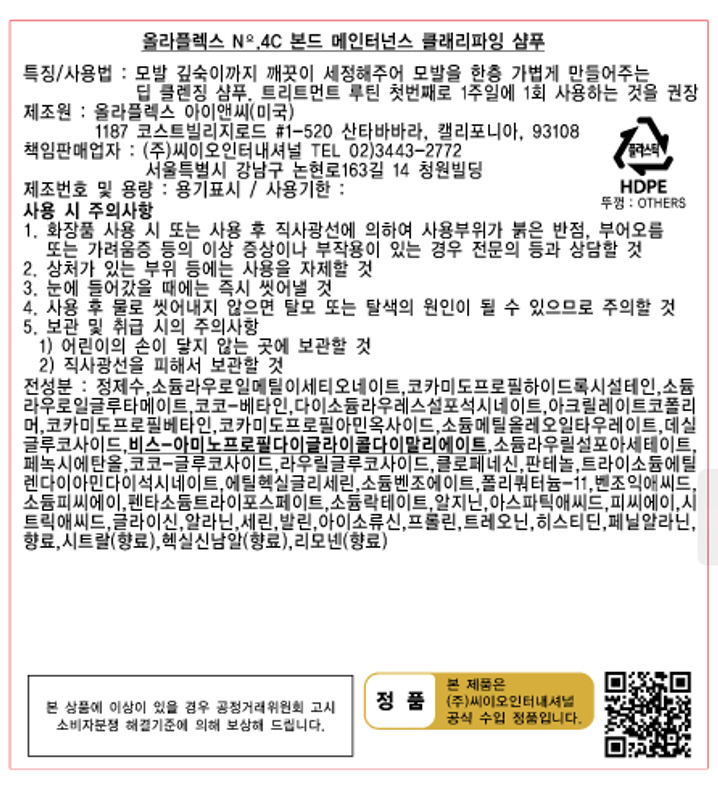 | 화장품제조업자, 화장품책임판매업자 및 맞춤형화장품판매업자 | 컨텐츠 참조 | 제조국 | 미국 |