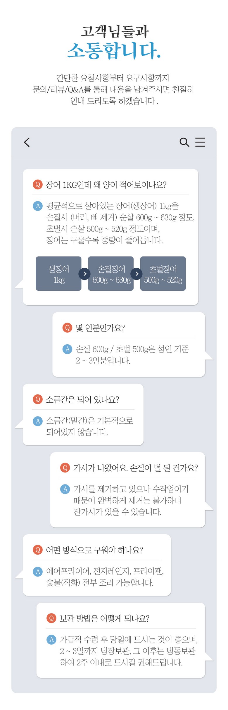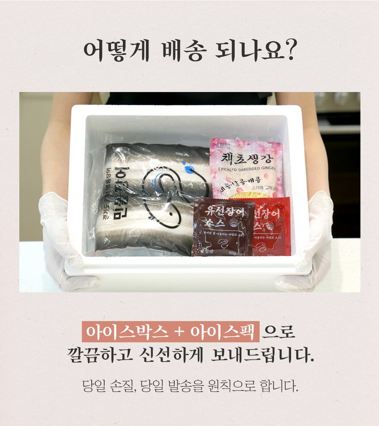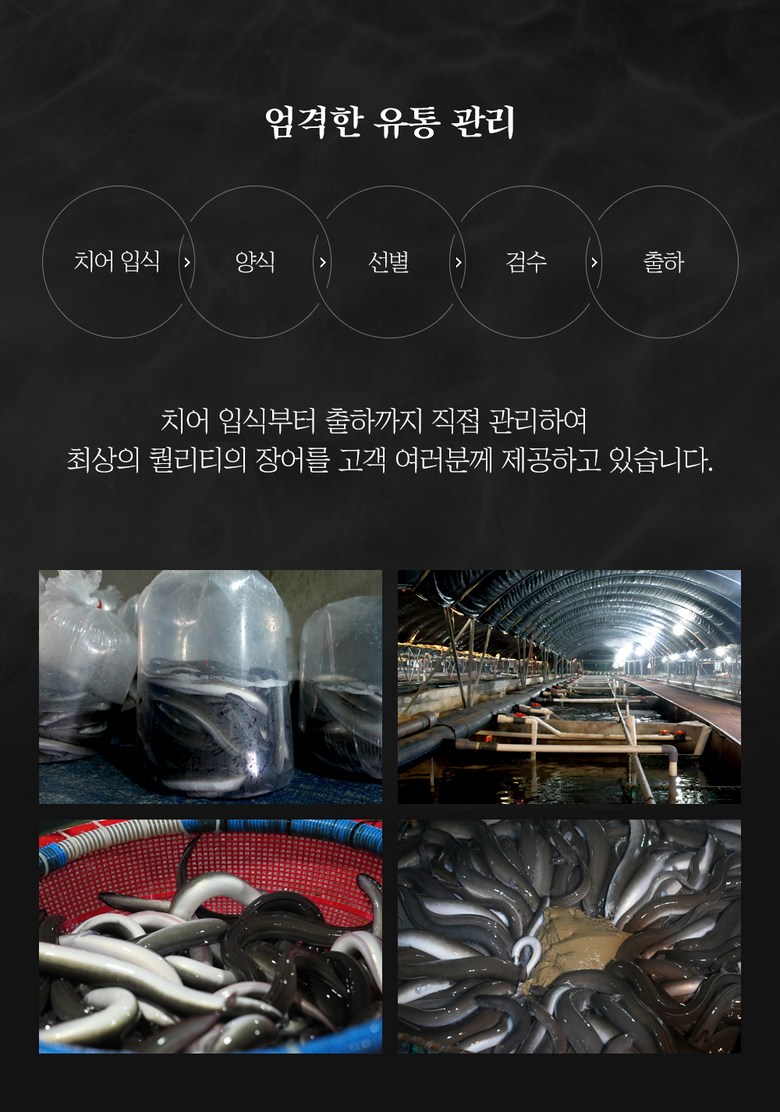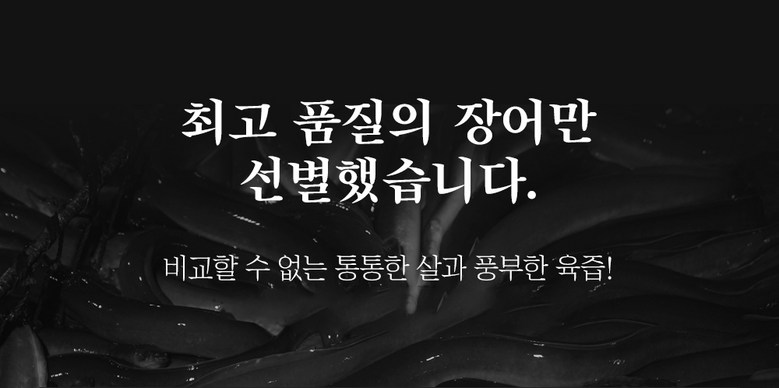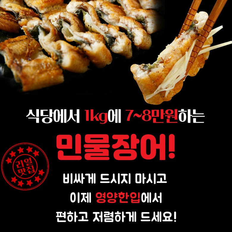 | 품목 또는 명칭 | 민물장어 | 포장단위별 내용물의 용량(중량),수량,크기 | 500g(초벌후 250g) / 1kg(초벌 후 500g) |