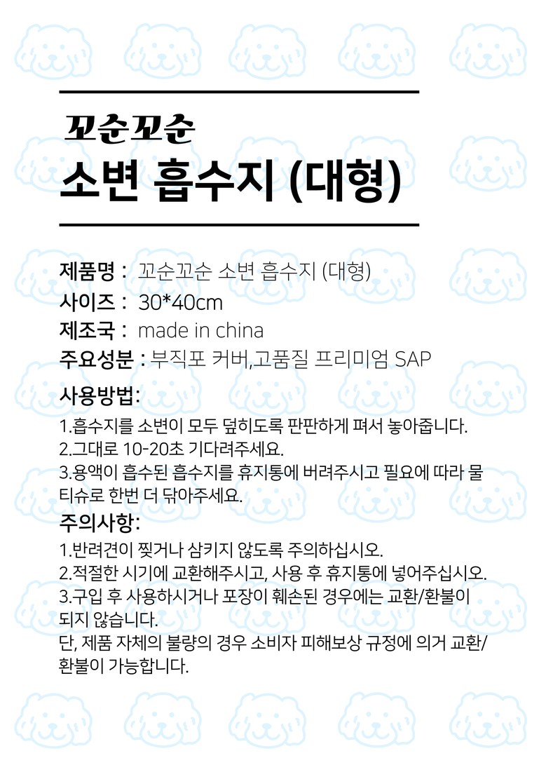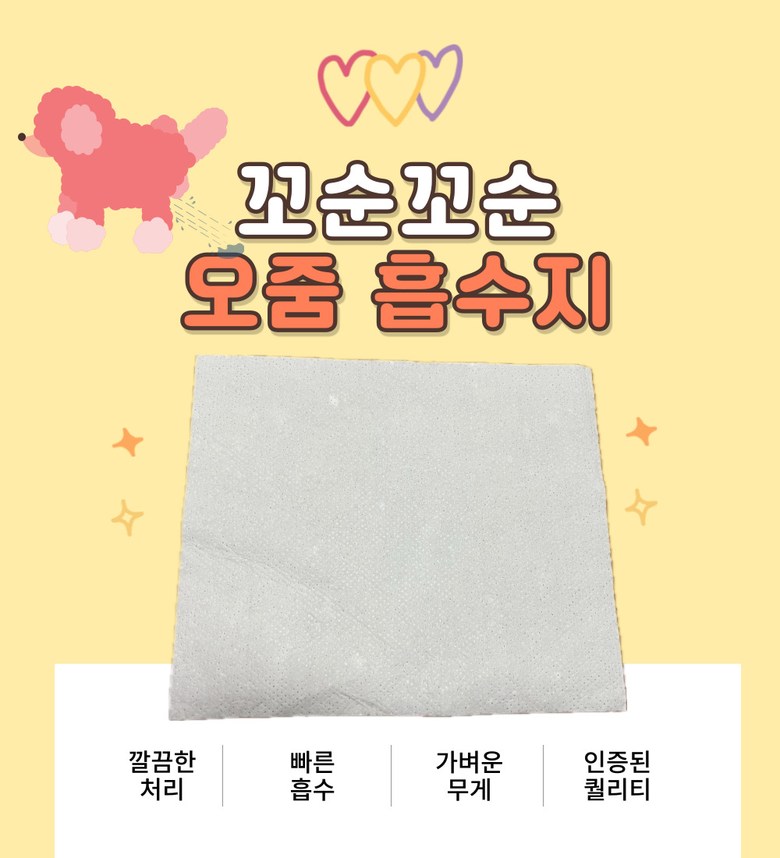 꼬순꼬순 강아지 순간 소변 흡수지 오줌 청소 냄새 제거 티슈