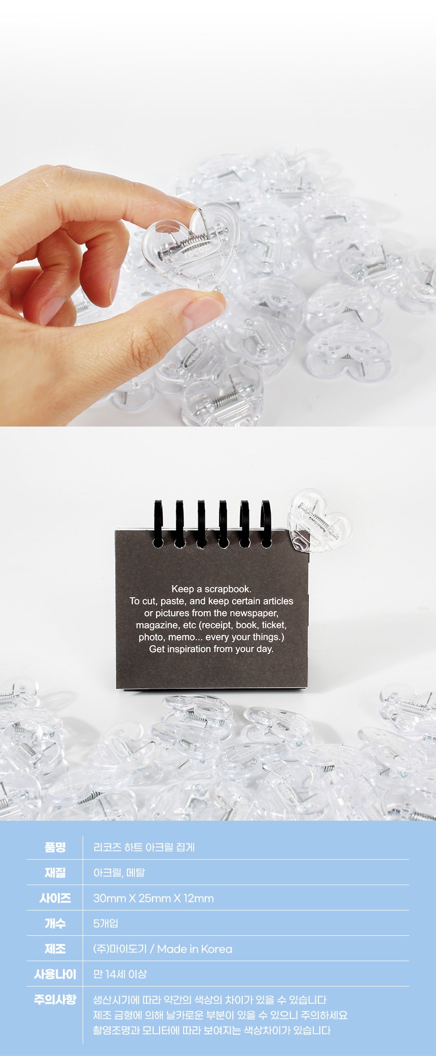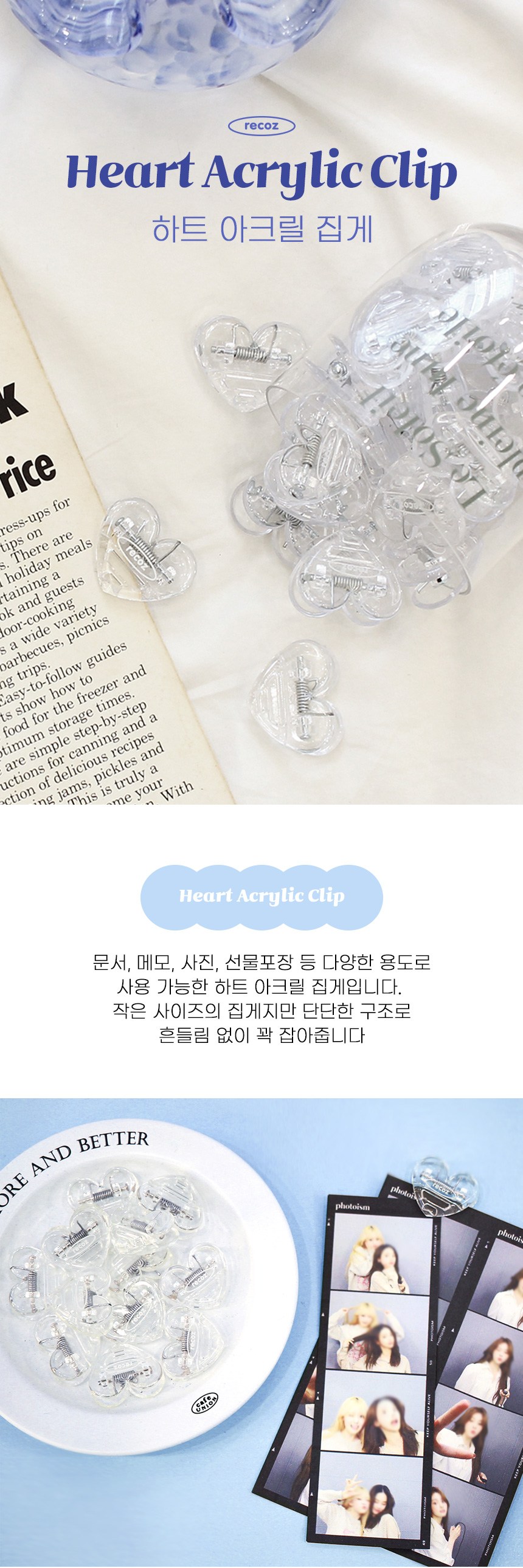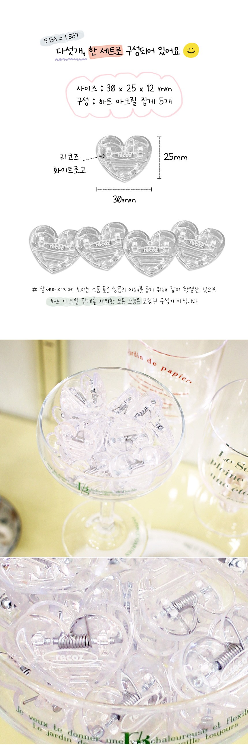 | 품명 및 모델명 | 리코즈 하트 아크릴 집게 | 인증/허가 사항 | 해당없음 |