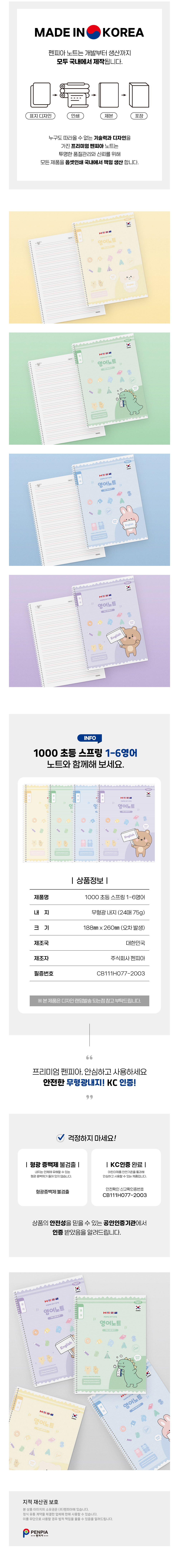 | 품명 및 모델명 | 1000 초등 스프링노트 1-6영어 공용 | KC 인증정보 | CB111H077-2003 |