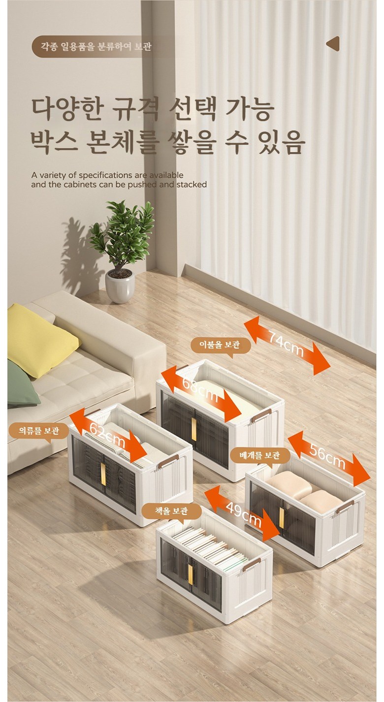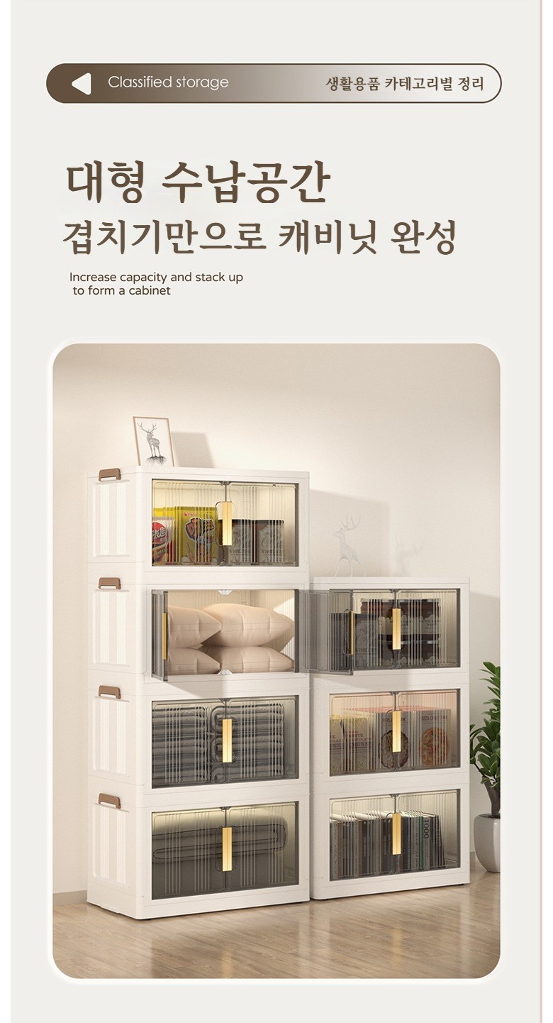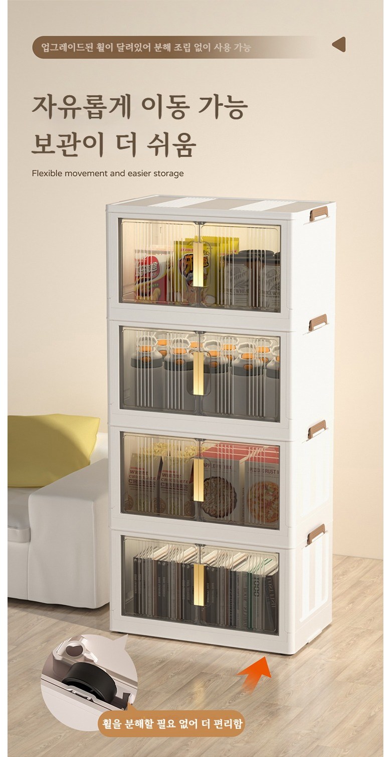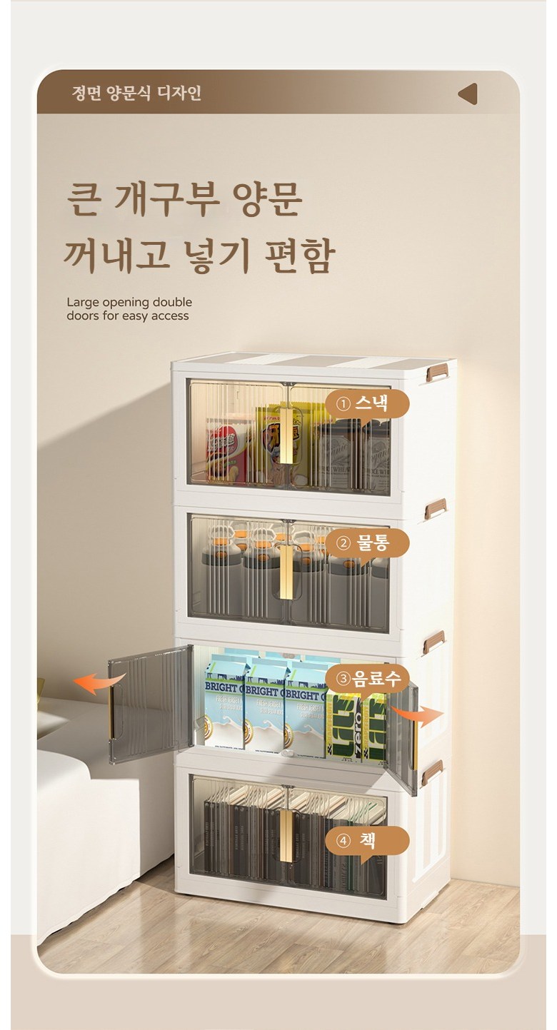Paradoma 수납장 무설치 접이식 다용도 수납장 양문 이동식 플라스틱 수납장 리빙박스 폴딩 정리함 폴딩박스