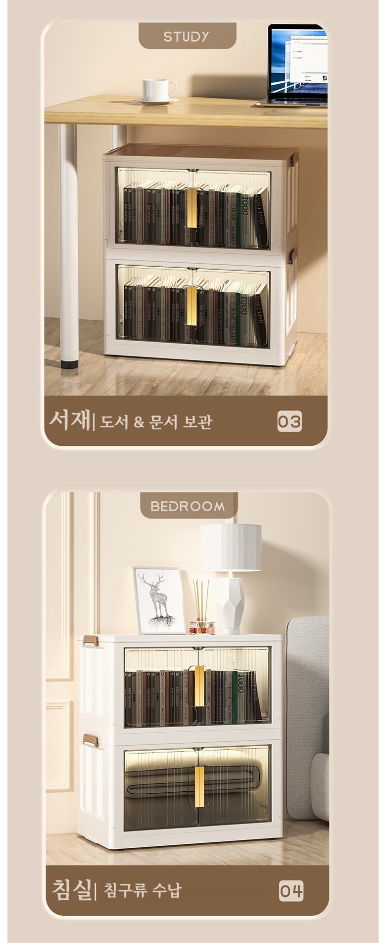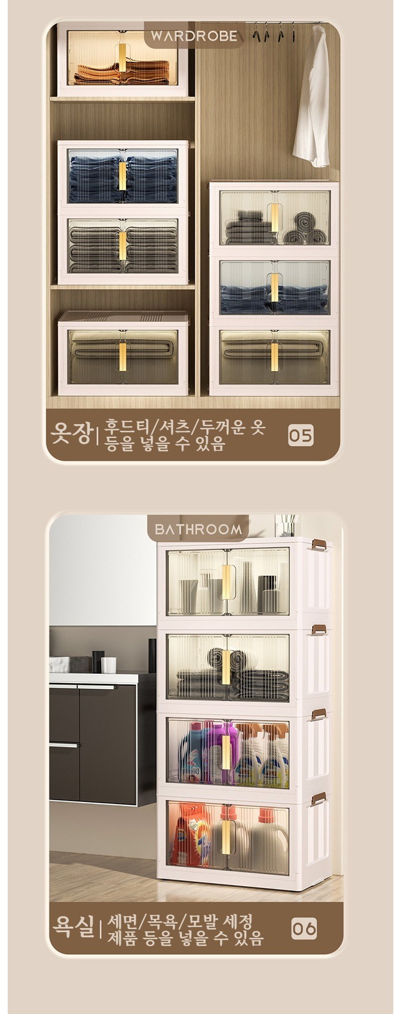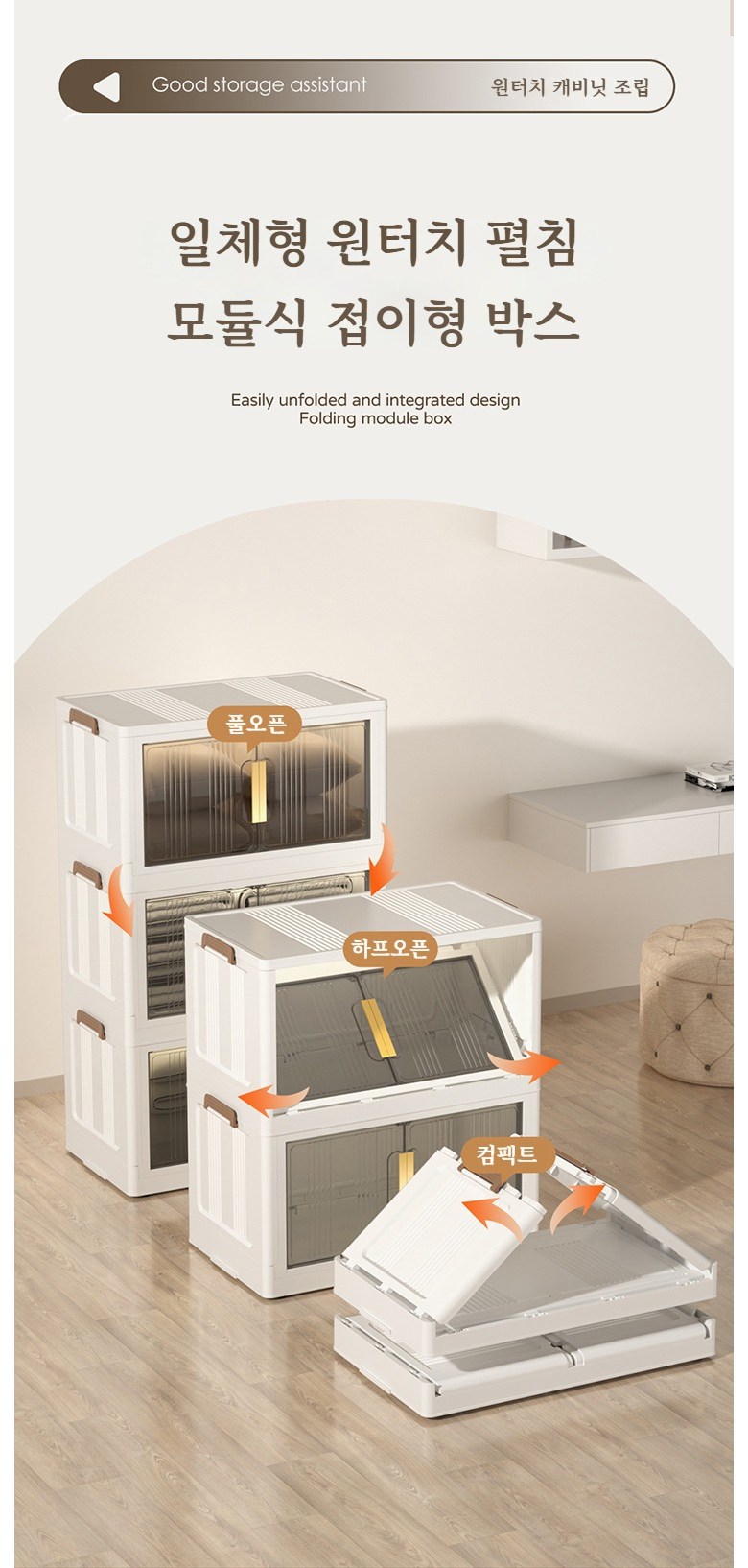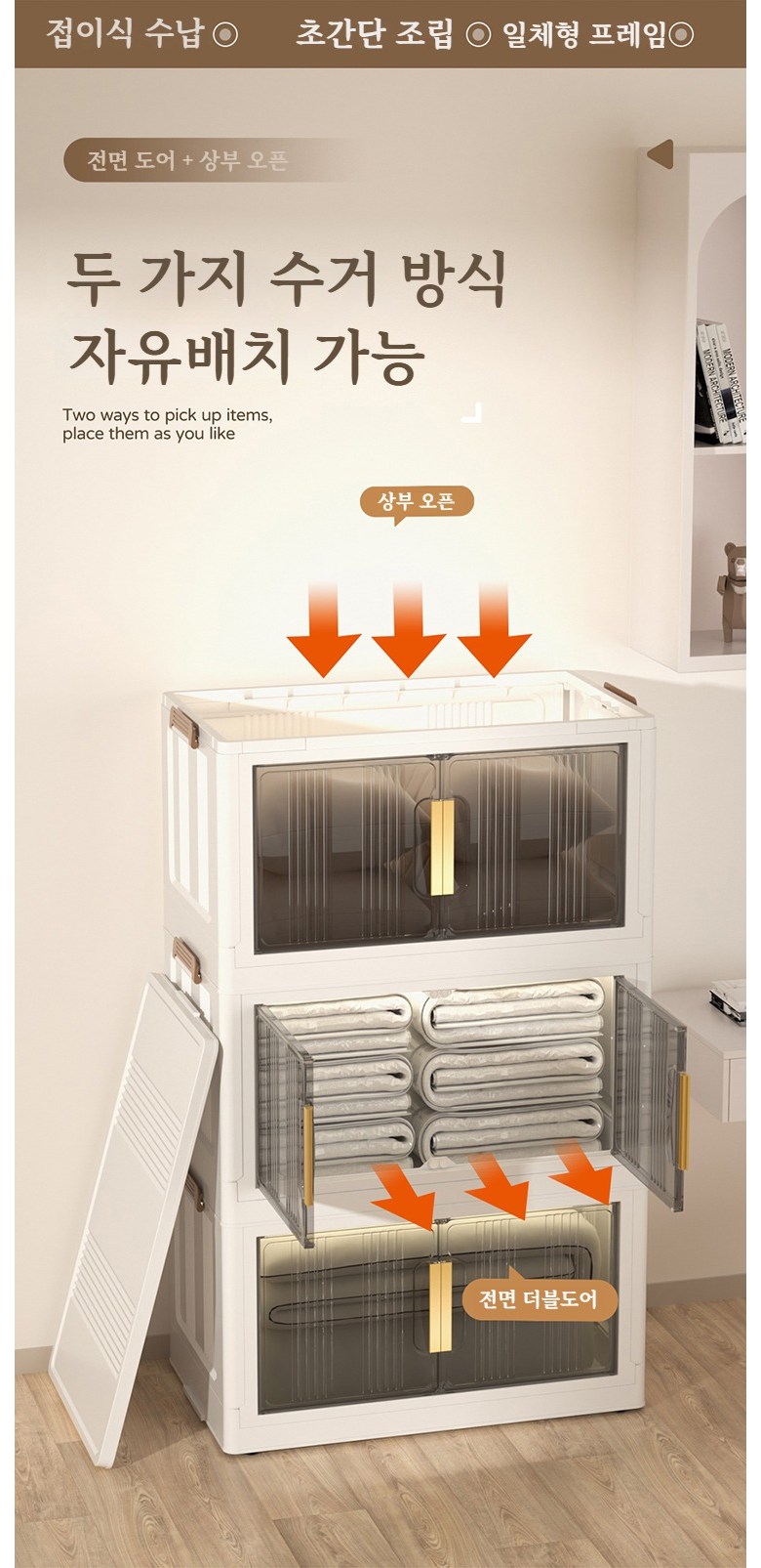 Paradoma 수납장 무설치 접이식 다용도 수납장 양문 이동식 플라스틱 수납장 리빙박스 폴딩 정리함 폴딩박스