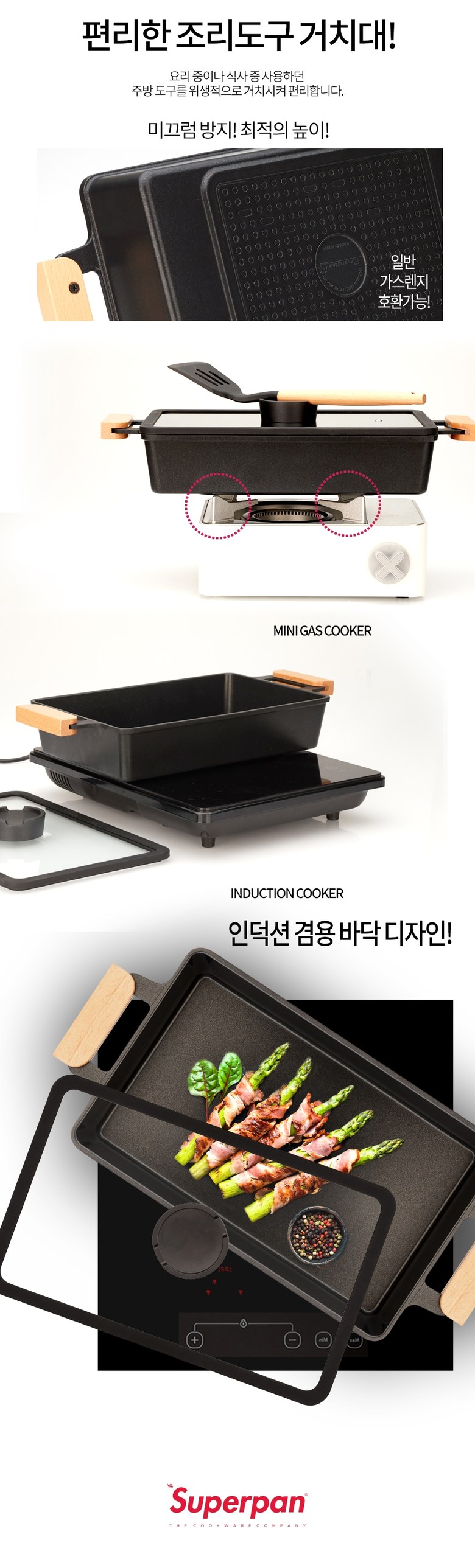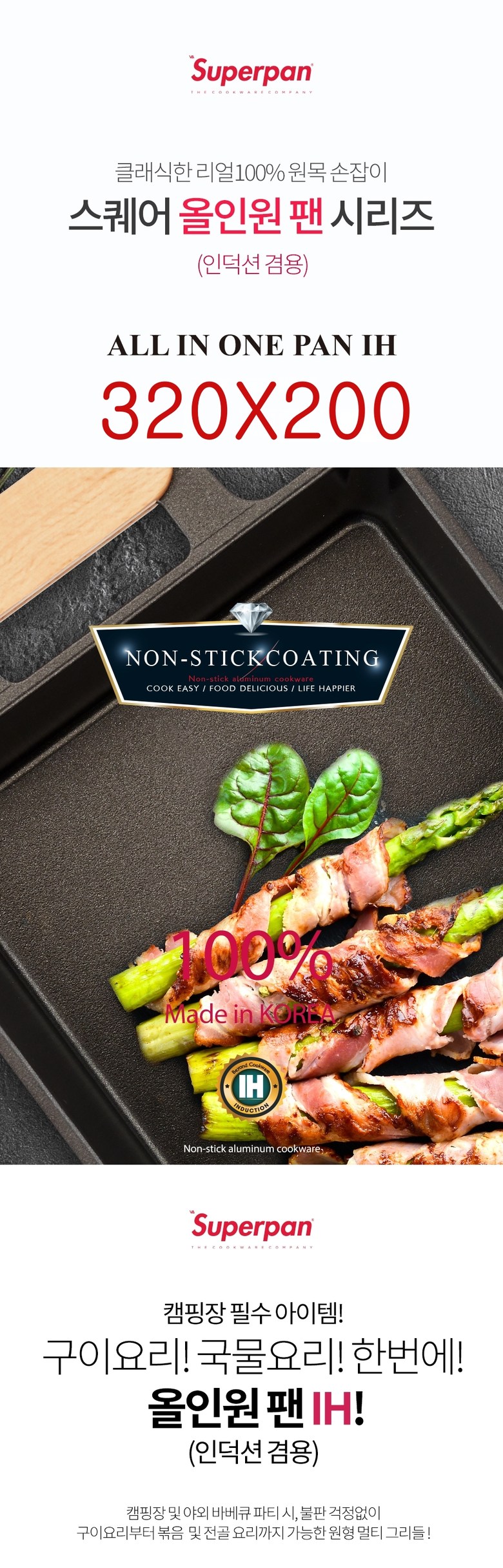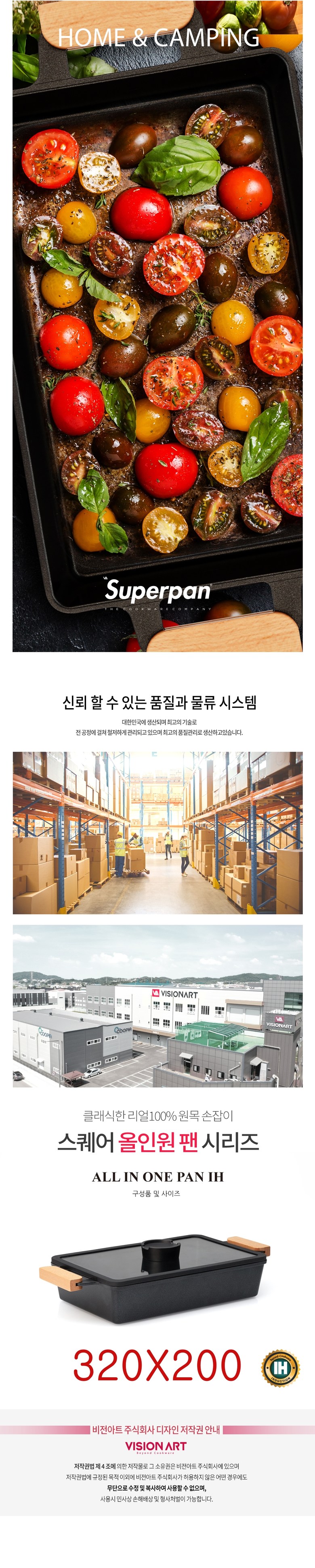 비전아트 올인원 IH 대형 사각 전골냄비 전골팬 32cm 논스틱 코팅_냄비받침 증정, 320x200x65..., 1개