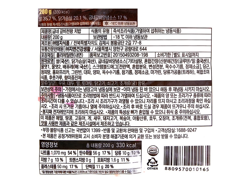 | 포장단위별 내용물의 용량(중량), 수량 | 200g x 2개 | 원재료명 및 함량 | 컨텐츠 참조 |