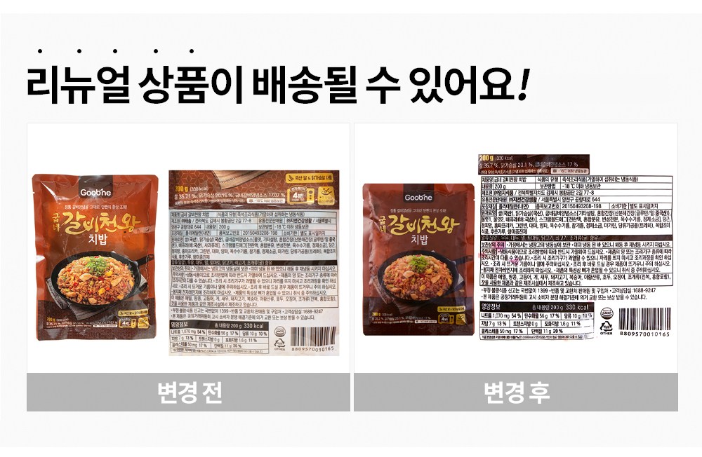 굽네 갈비양념소스로 조미한 닭가슴살 볶음밥을 소개할게요. 특유의 달콤하고 짭조름한 풍미가 매력적이지요. 한 입 먹으면, 큼직한 닭가슴살과 채소들이 입안에서 조화롭게 어우러진답니다. 전자레인지 등으로 조리하면 완성되니, 언제 어디서나 간편하게 갈비천왕 치밥을 즐겨보세요.