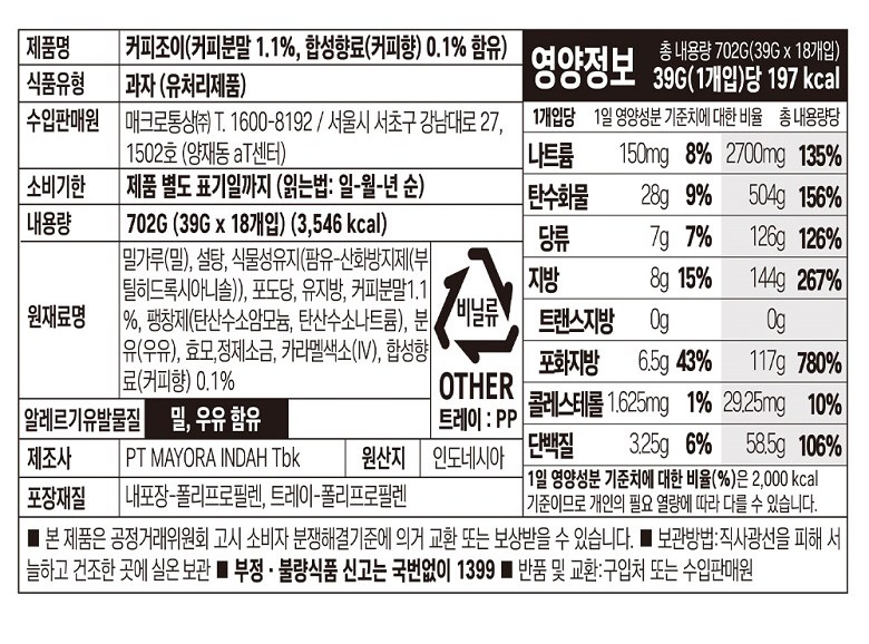 | 포장단위별 내용물의 용량(중량), 수량 | 702g x 3개 | 원재료명 및 함량 | 컨텐츠 참조 |